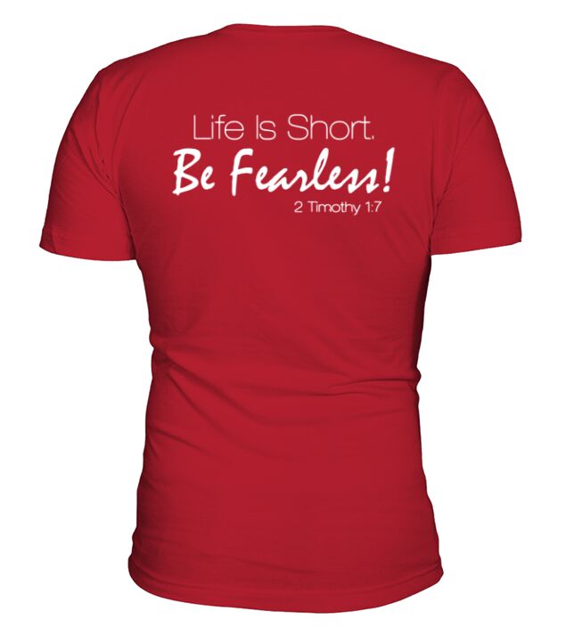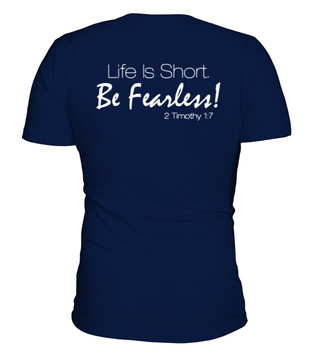 Shop Life is short be fearless 2 Timothy 1:7 V-Neck T-shirt custom made just for you. Available on many styles, sizes, and colors.