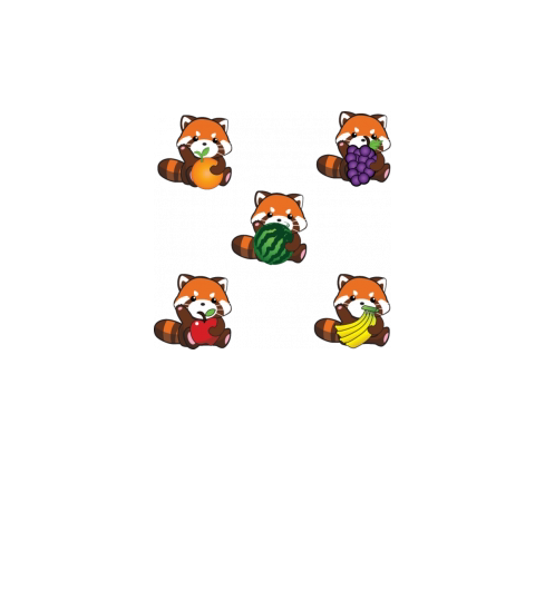 Little cute red panda with fruits - apple grape