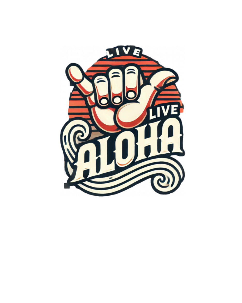 Live Aloha in large wavy retro style shaka hand