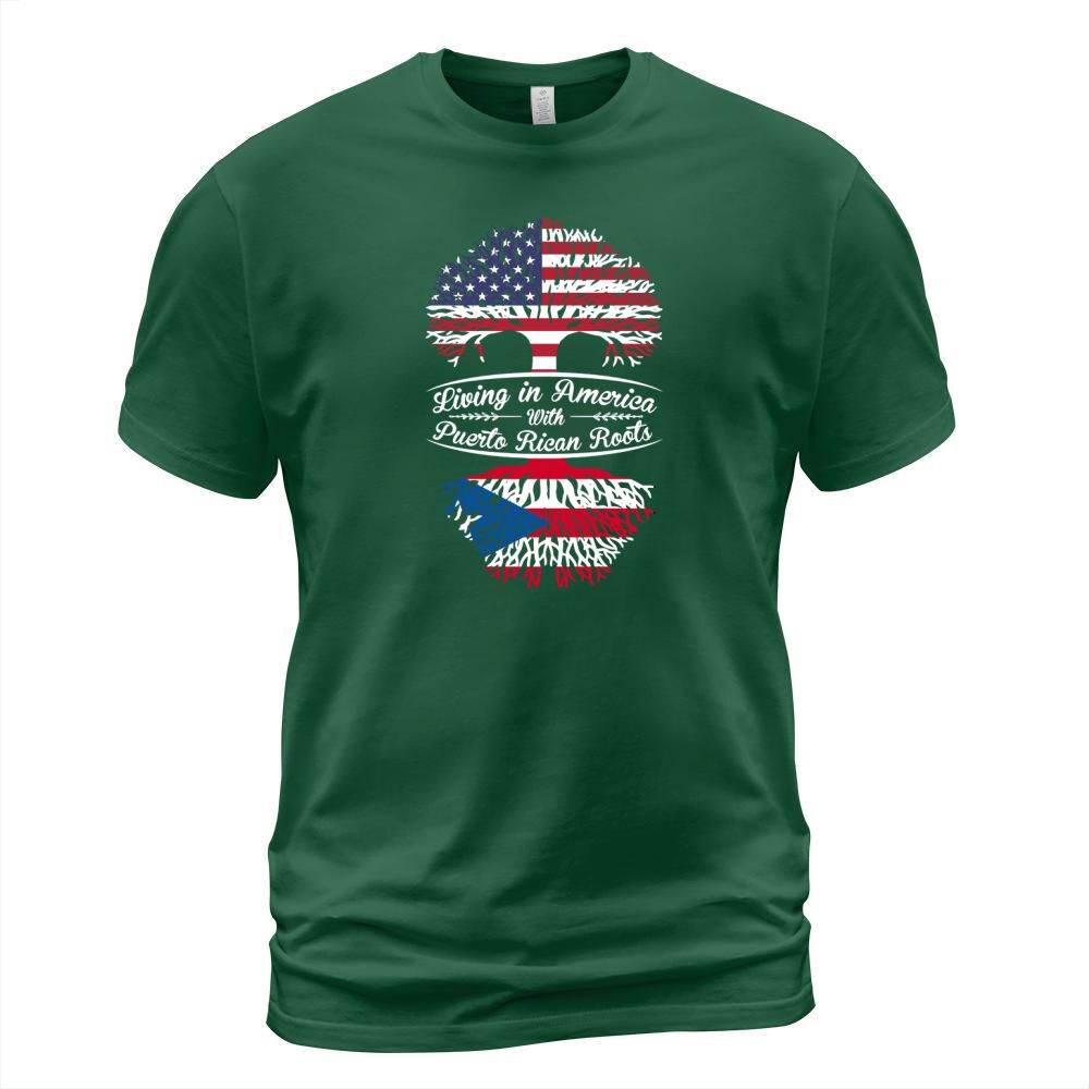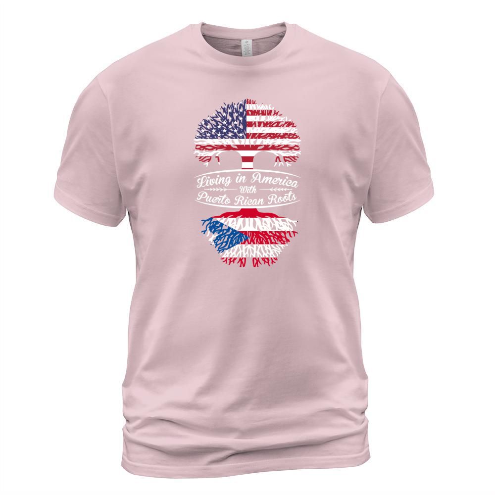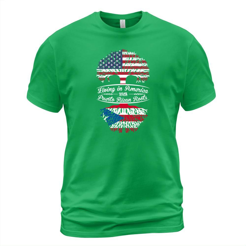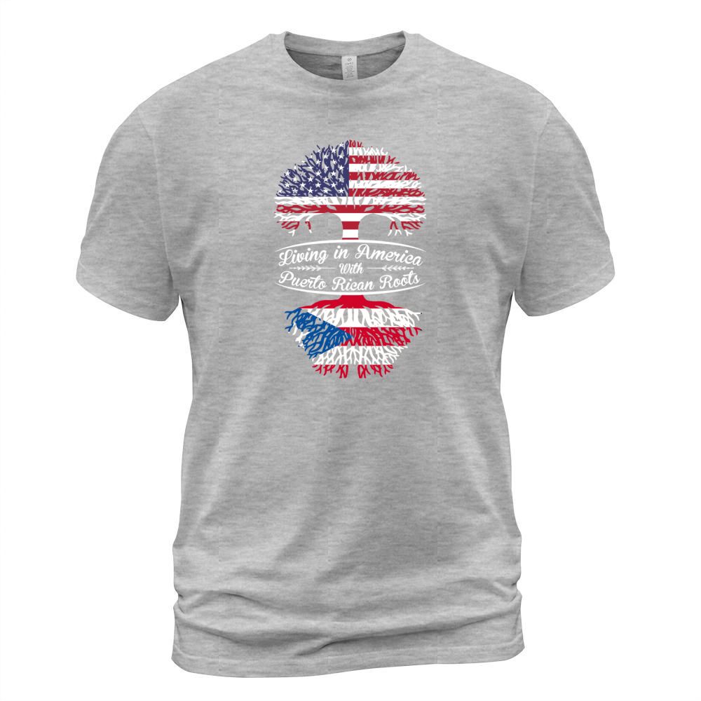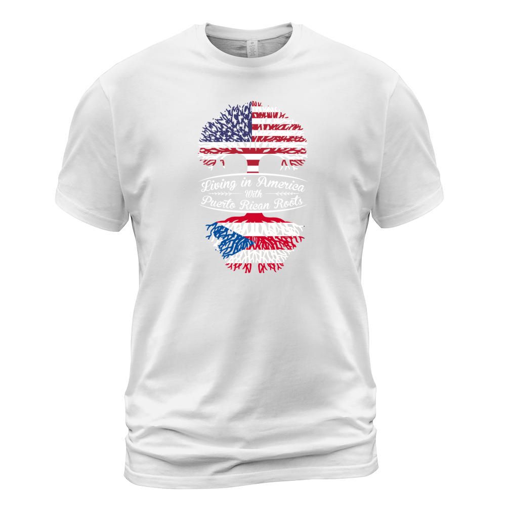 Shop Living in America with Puertorican Roots T-Shirt Unisex custom made just for you. Available on many styles, sizes, and colors.