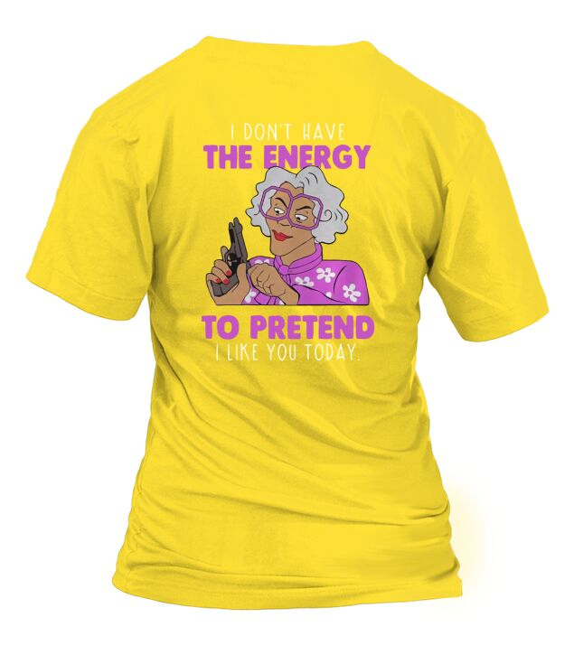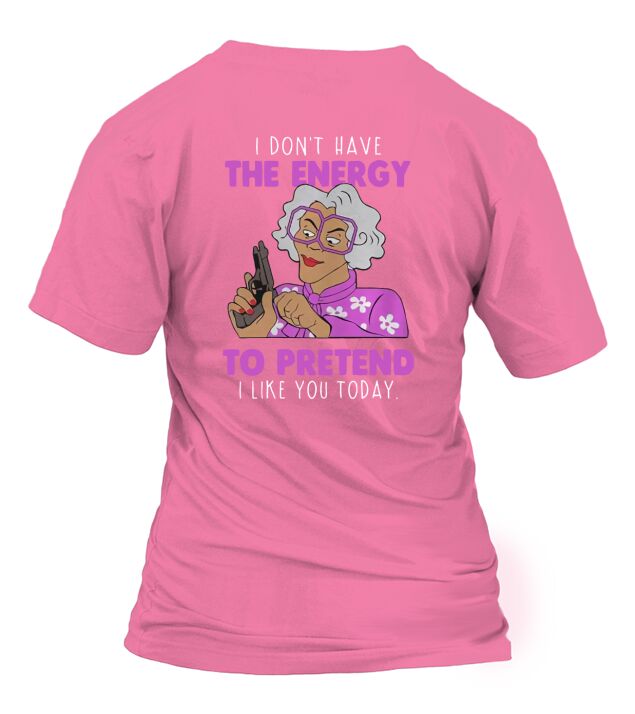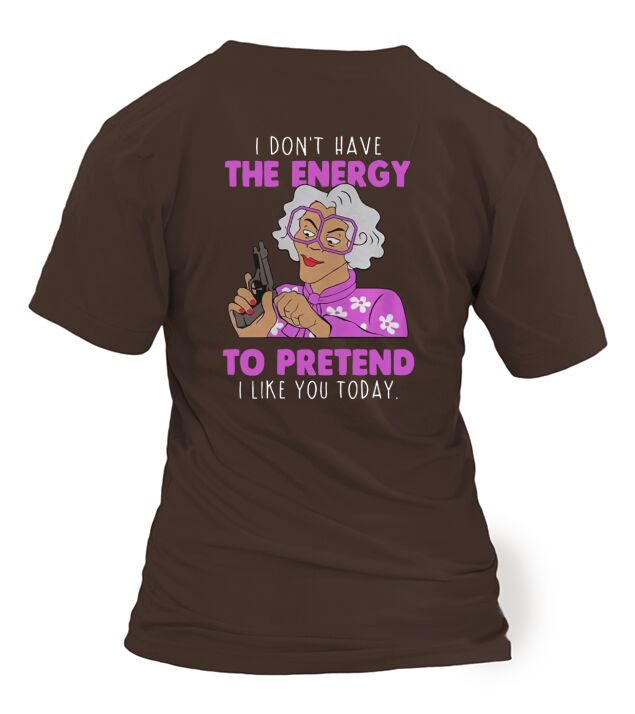 Shop MADEA I DONT HAVE THE ENERGY TO PRETEND I LIKE YOU TODAY T-Shirt Woman custom made just for you. Available on many styles, sizes, and colors.