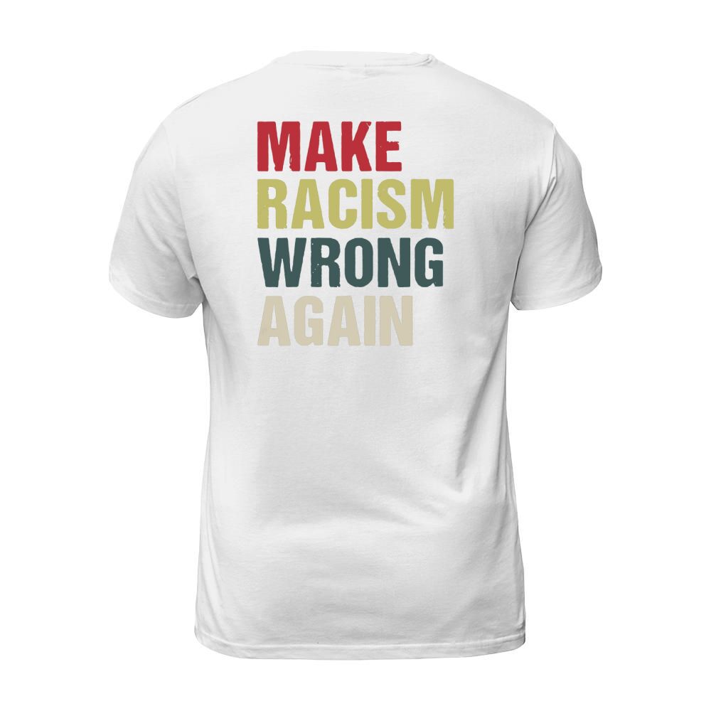 Shop Make Racism Wrong Again T-Shirt Unisex custom made just for you. Available on many styles, sizes, and colors.