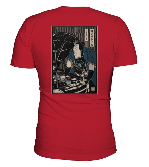 Shop Mechanic Samurai V-Neck T-shirt custom made just for you. Available on many styles, sizes, and colors.