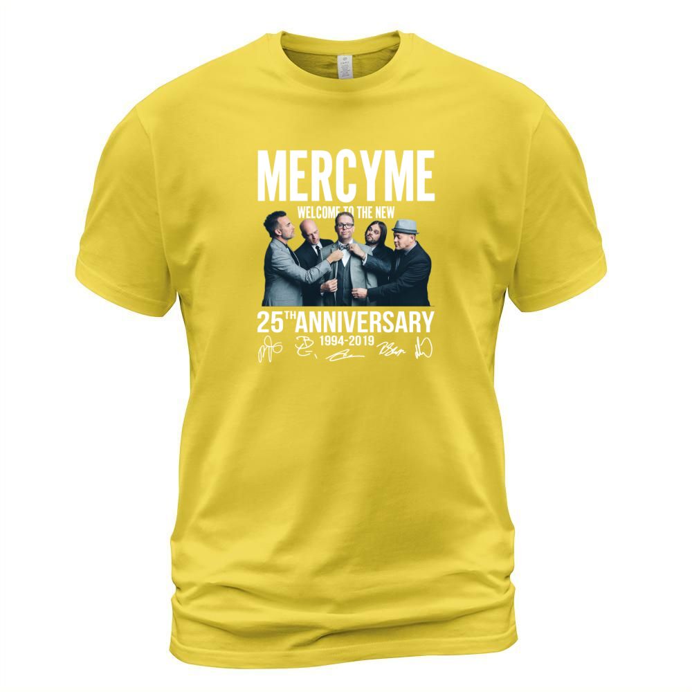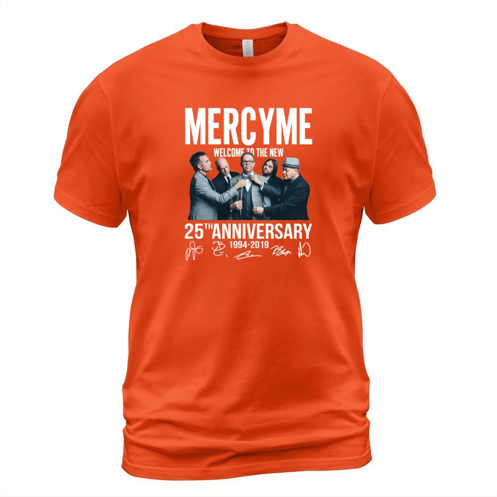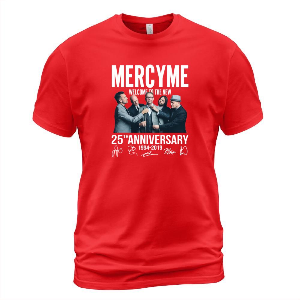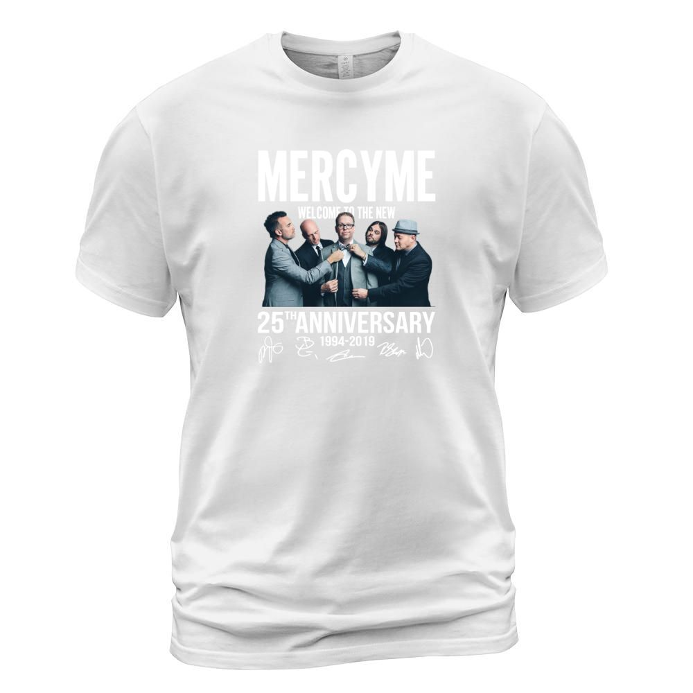 Shop Mercyme Welcome To The New 25th Anniversary 1994-2019 Signatures shirt T-Shirt Unisex custom made just for you. Available on many styles, sizes, and colors.