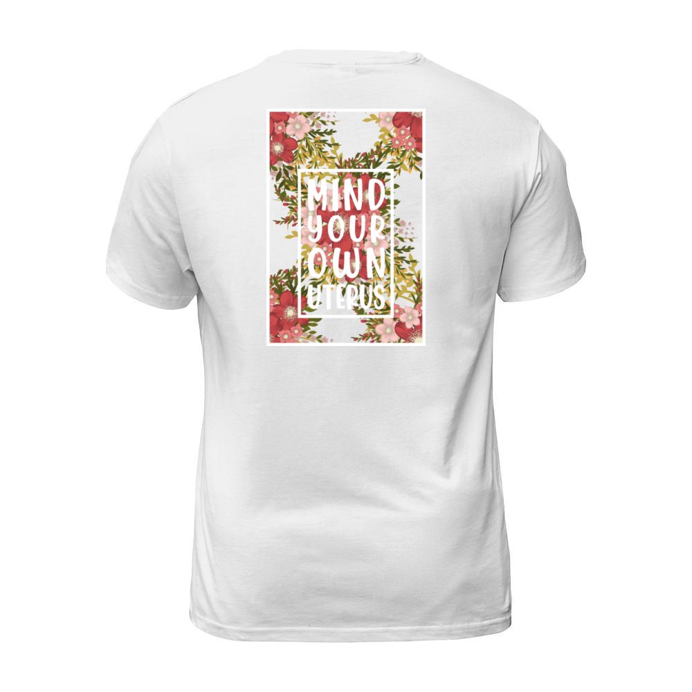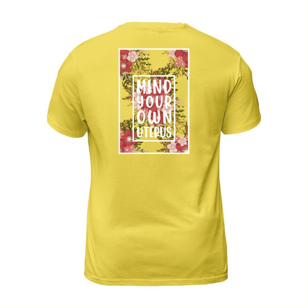 Shop Mind Your Own Uterus Feminist Womens Reproductive T-Shirt Unisex custom made just for you. Available on many styles, sizes, and colors.