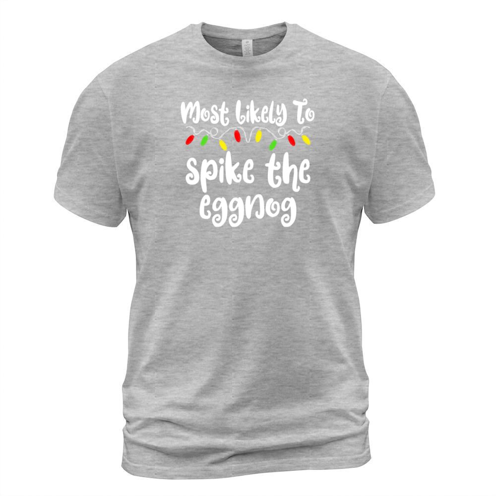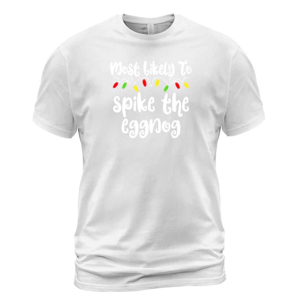 Shop Most Likely To Christmas Spike The Eggnog T-Shirt Unisex custom made just for you. Available on many styles, sizes, and colors.