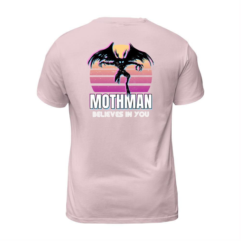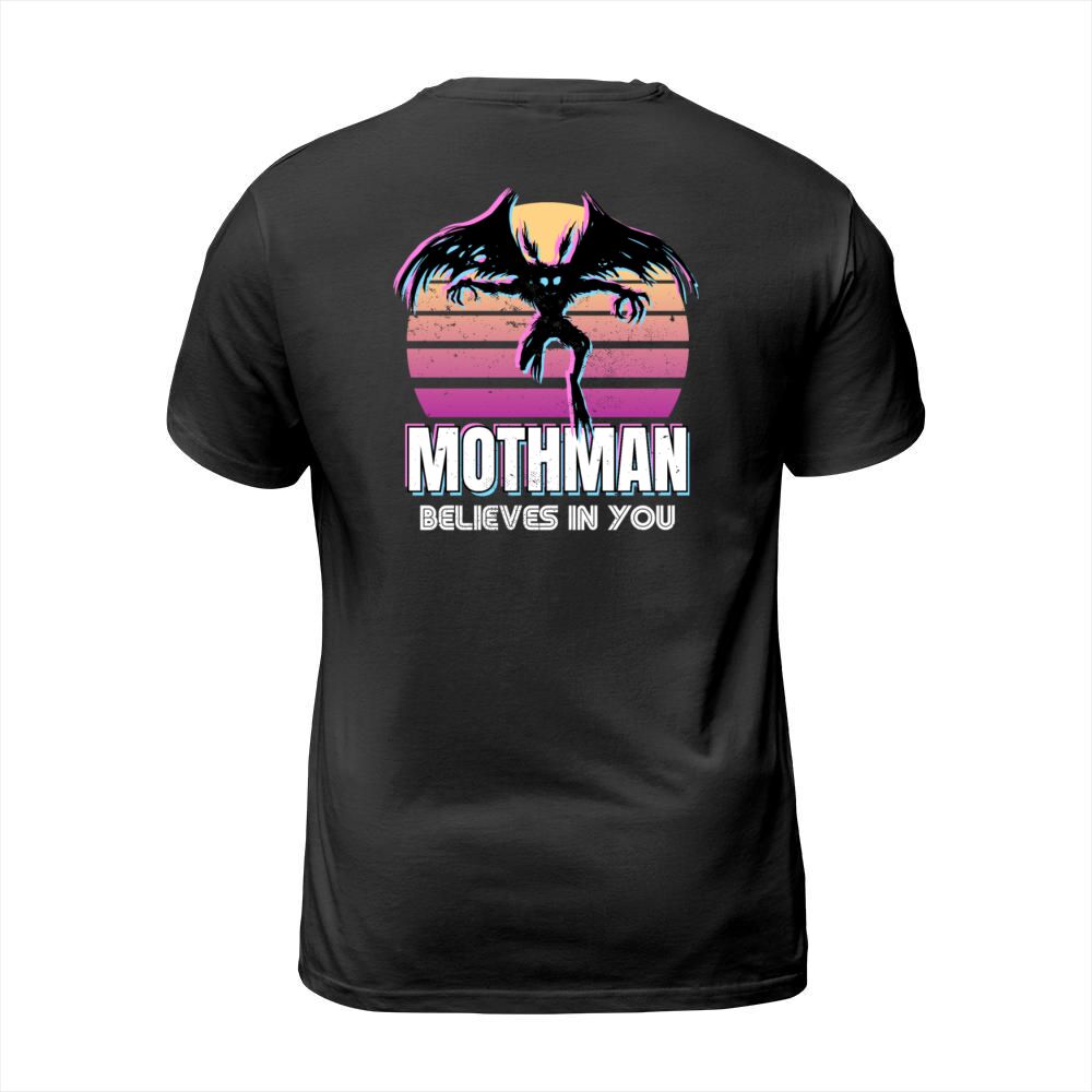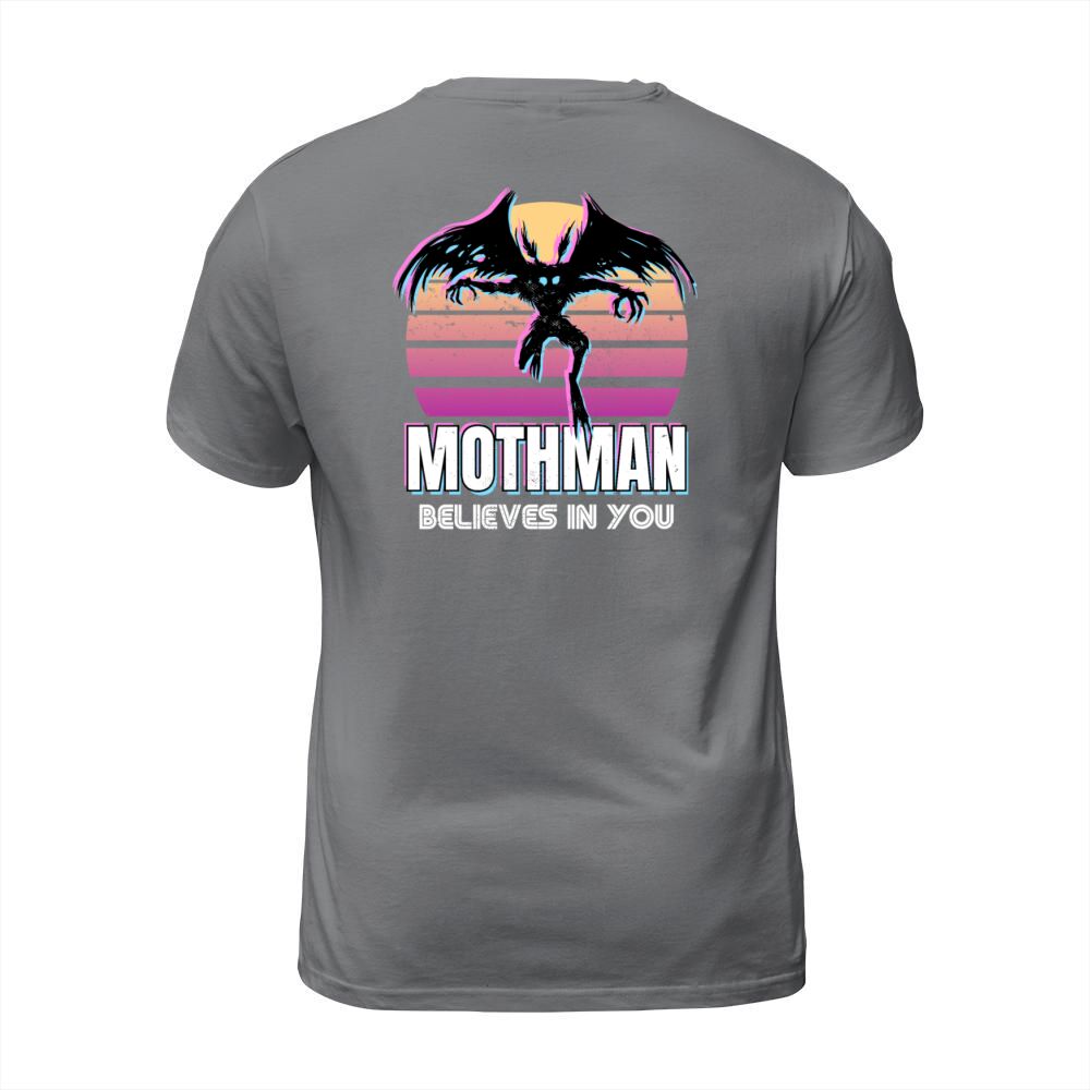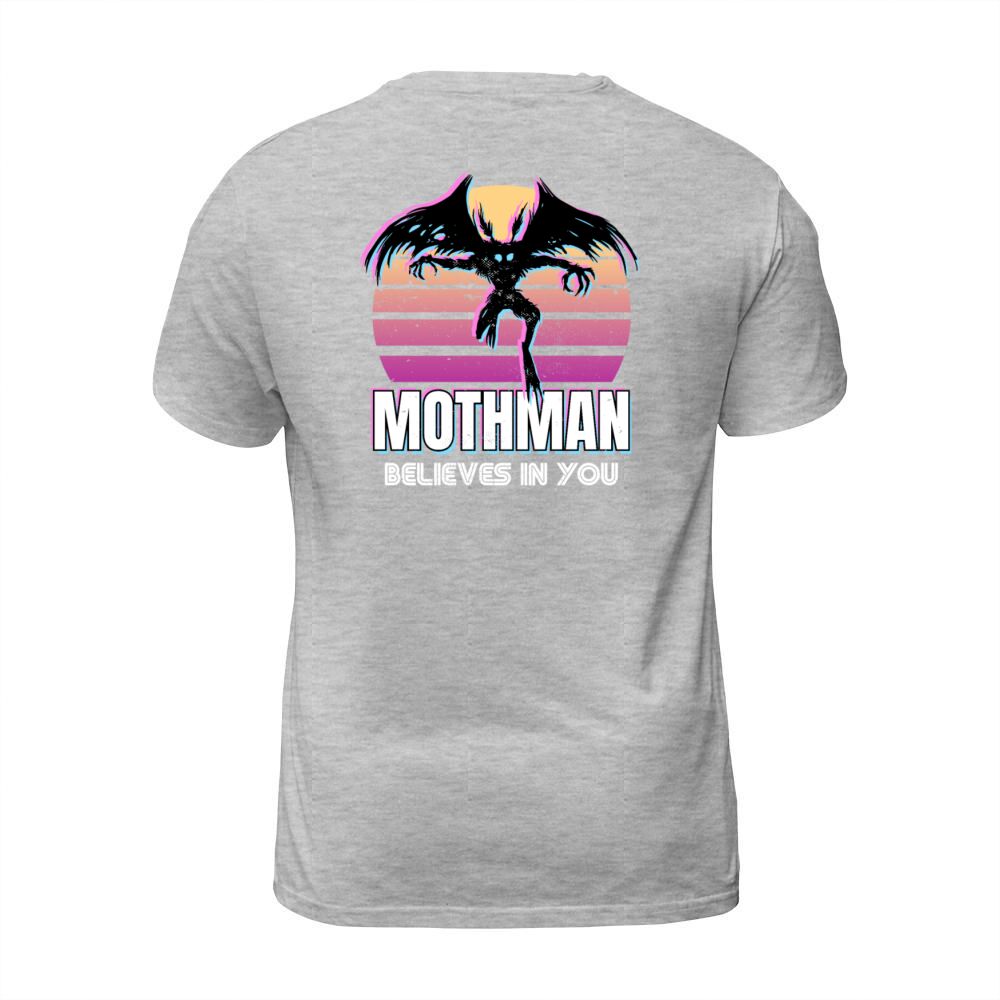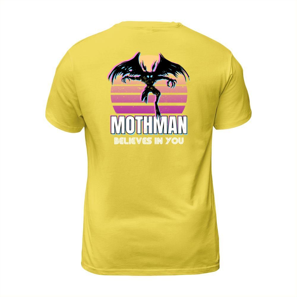 Shop Mothman believes in you Funny Cryptid Retro Gift T-Shirt Unisex custom made just for you. Available on many styles, sizes, and colors.