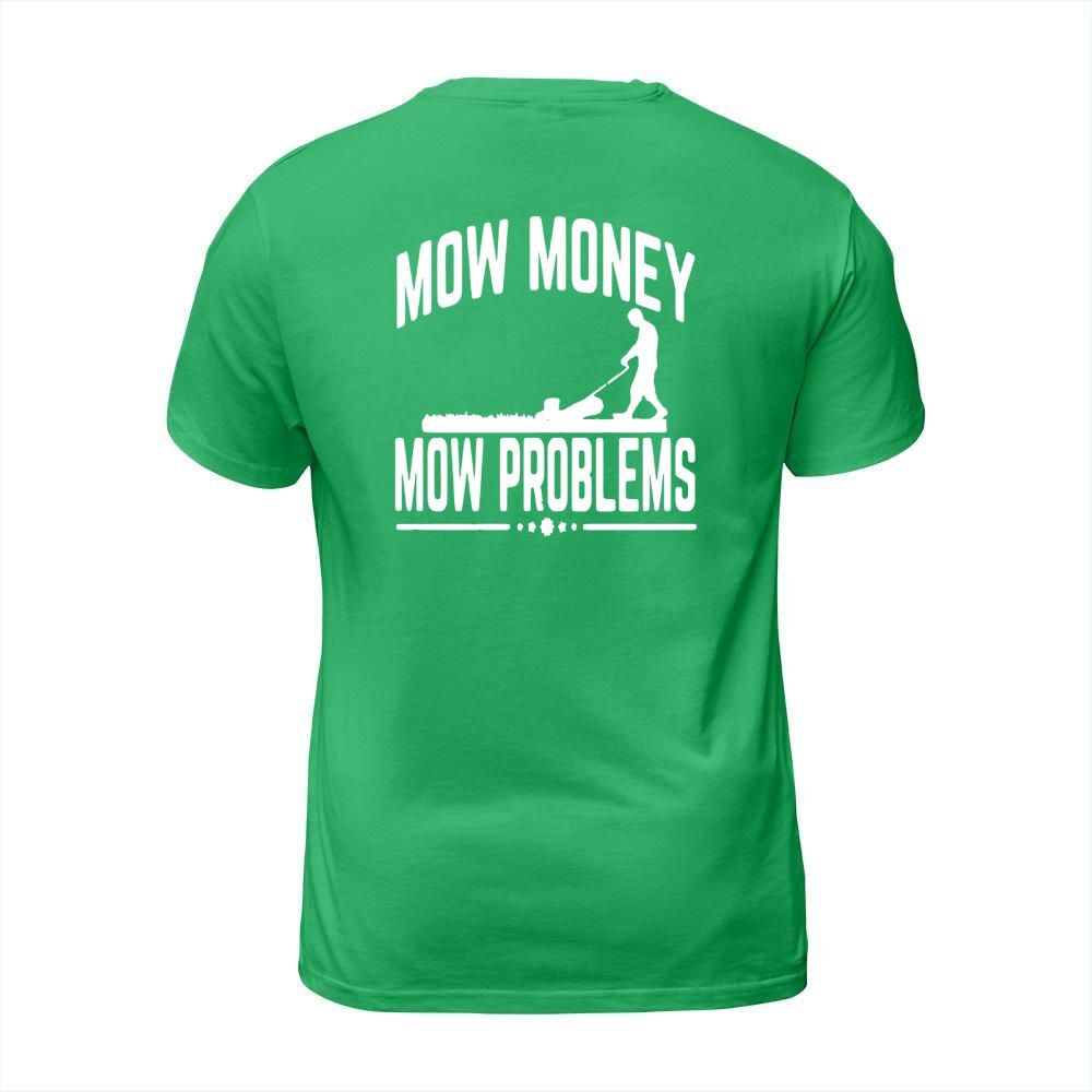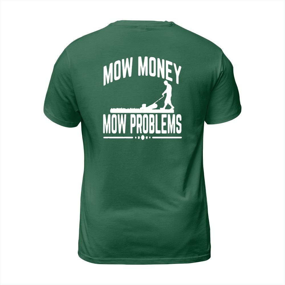 Shop MOW MONEY MOW PROBLEMS GARDEN GRASS MOWING T-Shirt Unisex custom made just for you. Available on many styles, sizes, and colors.