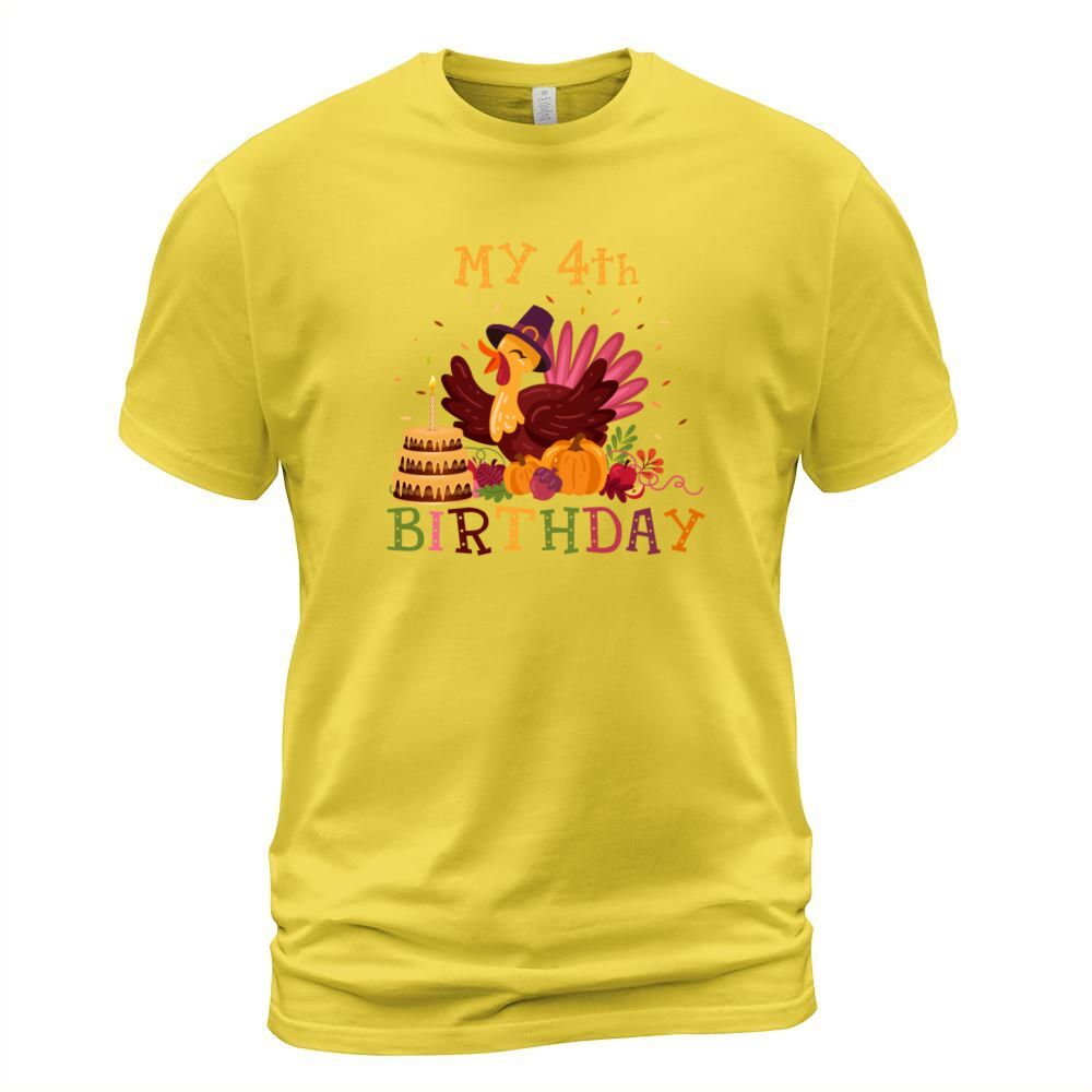 Shop My 4th Birthday Thanksgiving Turkey 4 Year Old Men's T-Shirt custom made just for you. Available on many styles, sizes, and colors.