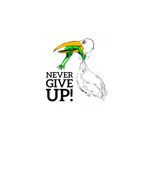 Never give up stork and frog