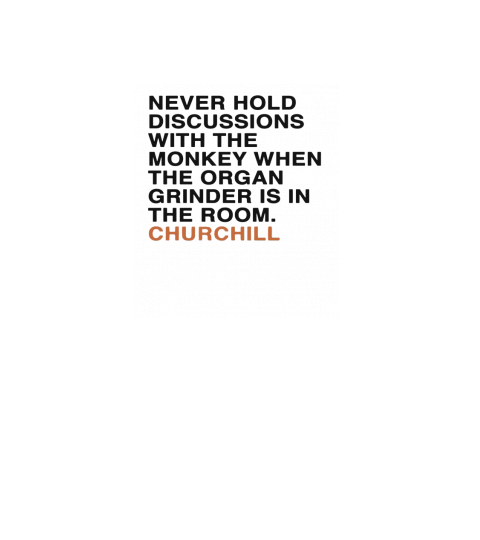 NEVER HOLD DISCUSSIONS WITH THE MONKEY WHEN THE ORGAN GRINDER IS IN THE ROOM CHURCHILL