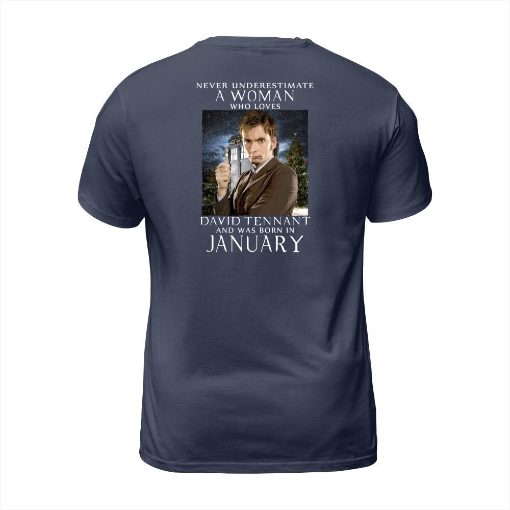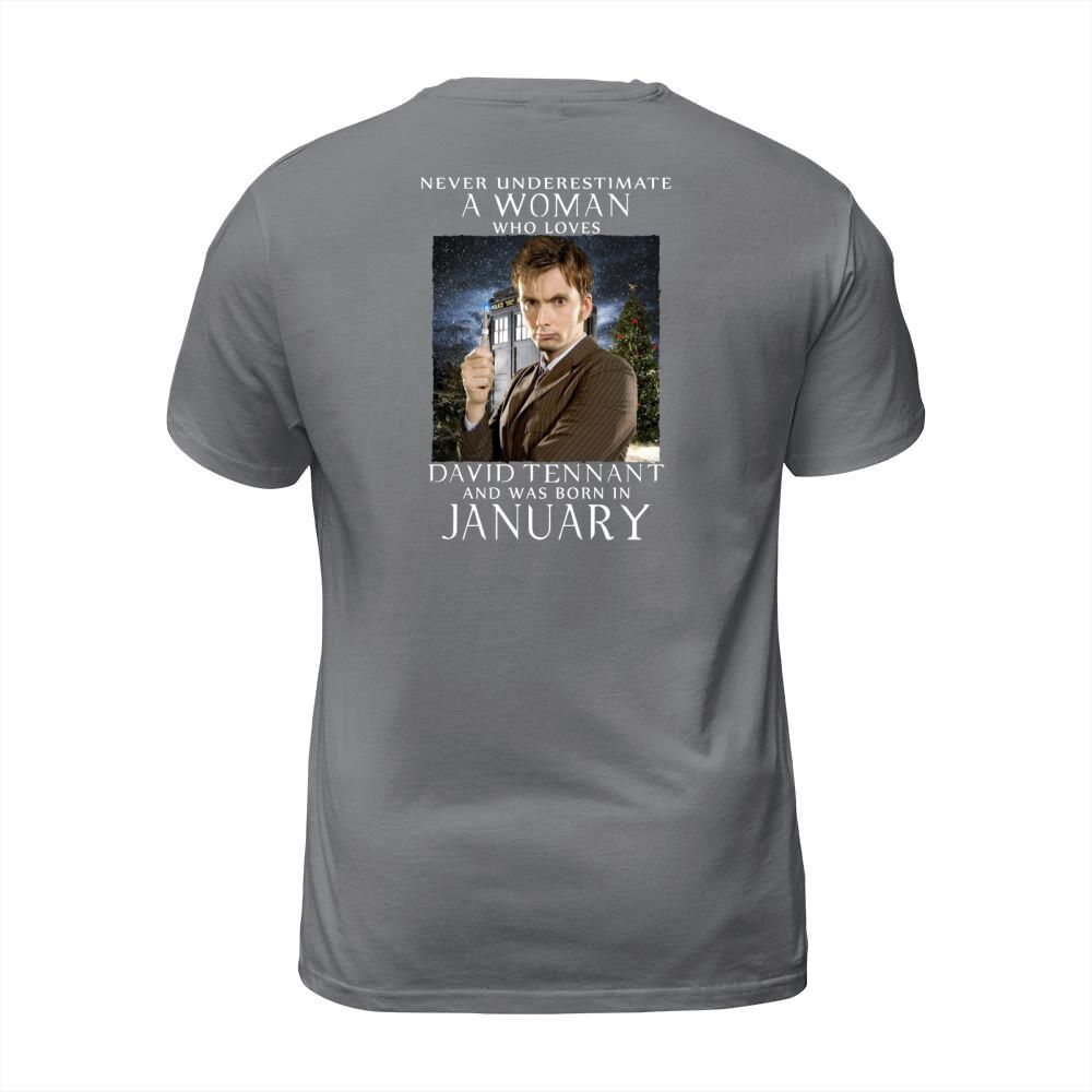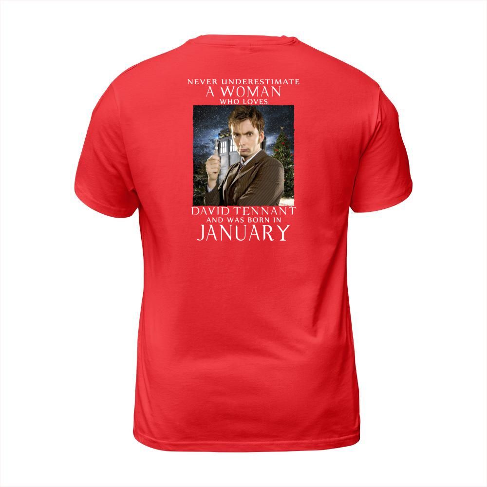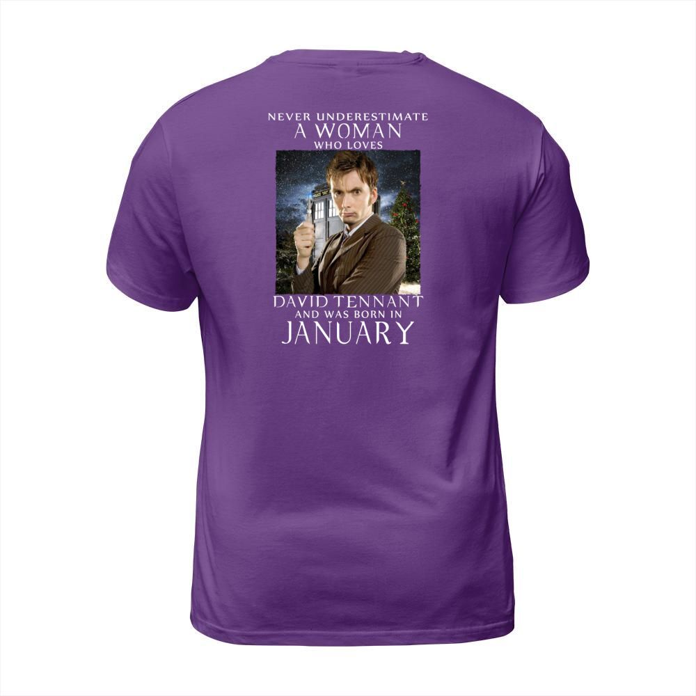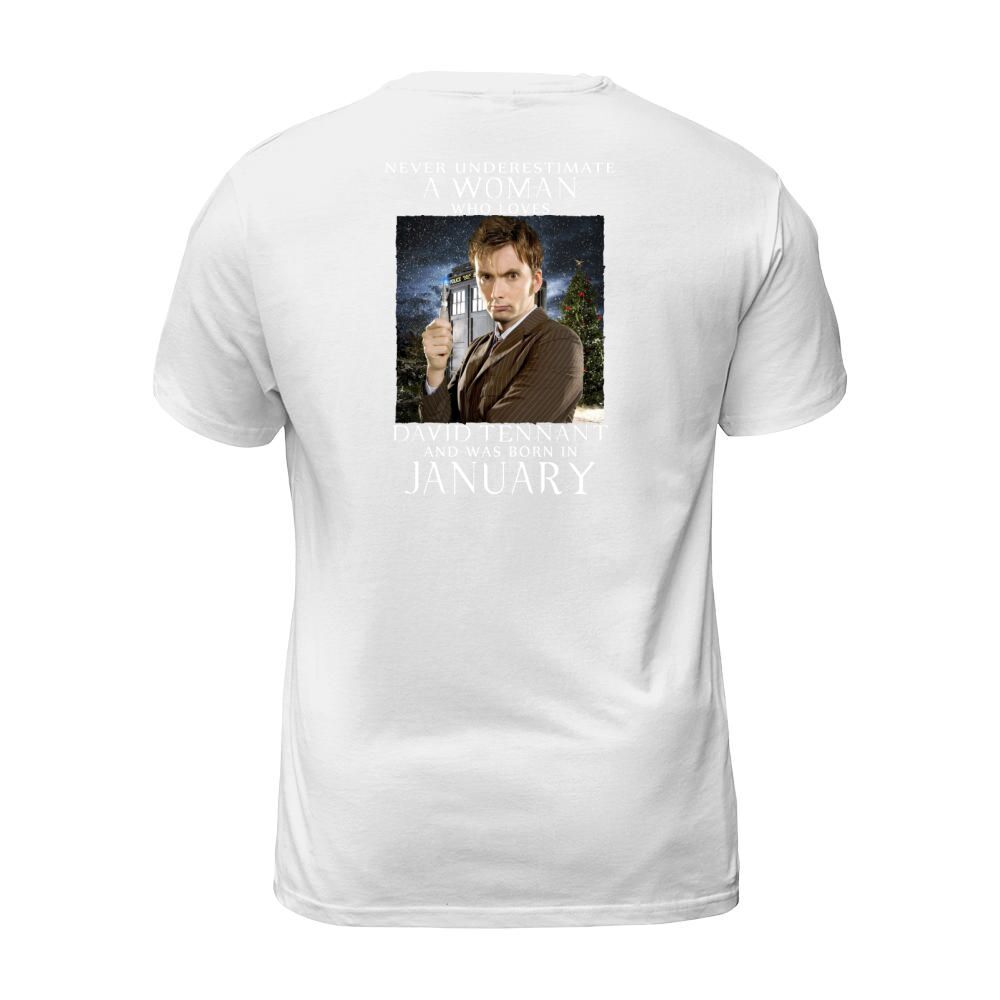 Shop NEVER UNDERESTIMATE A WOMAN who loves david tennant and was born in january T-Shirt Unisex custom made just for you. Available on many styles, sizes, and colors.