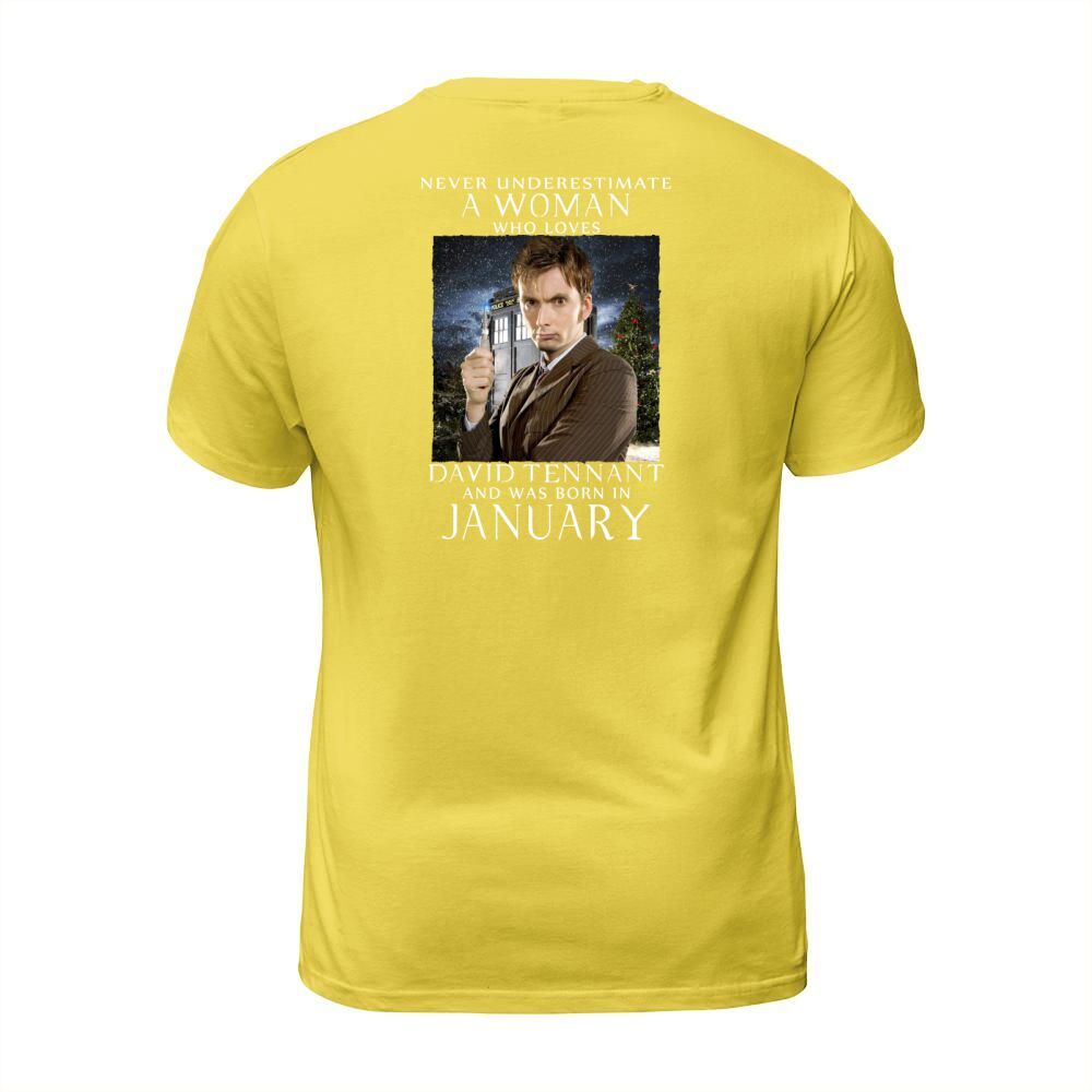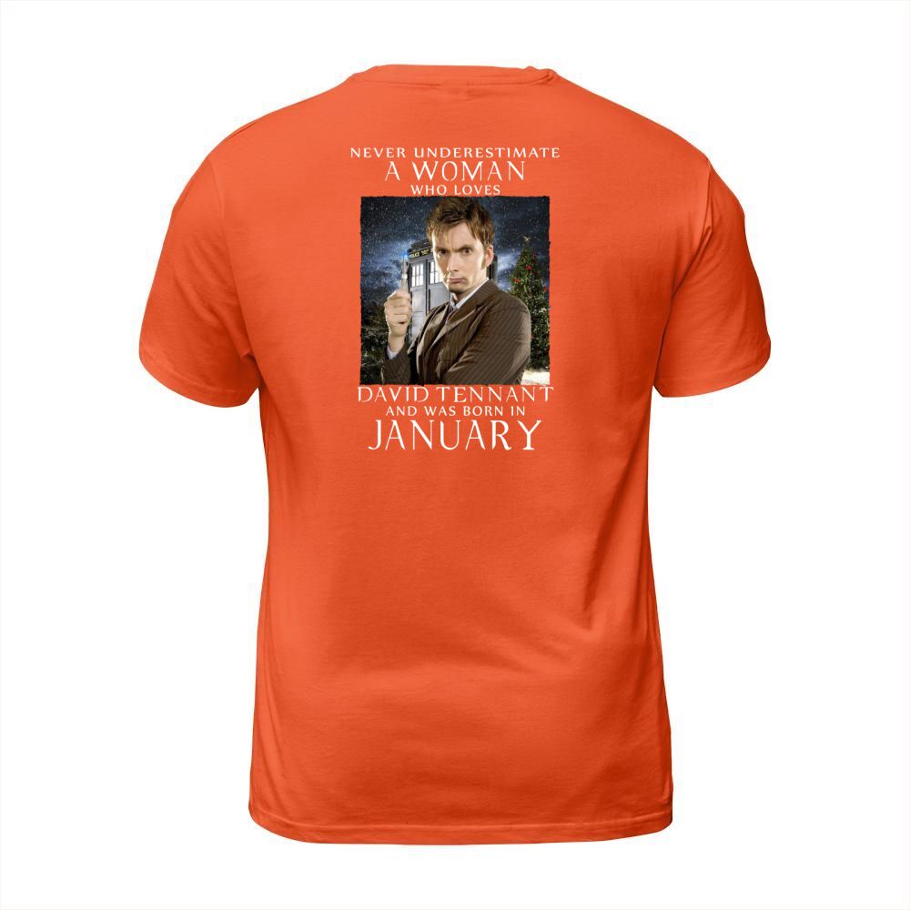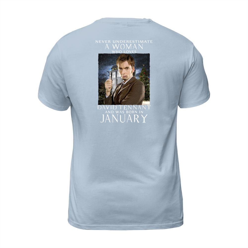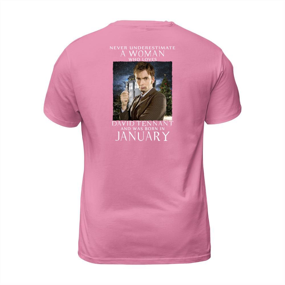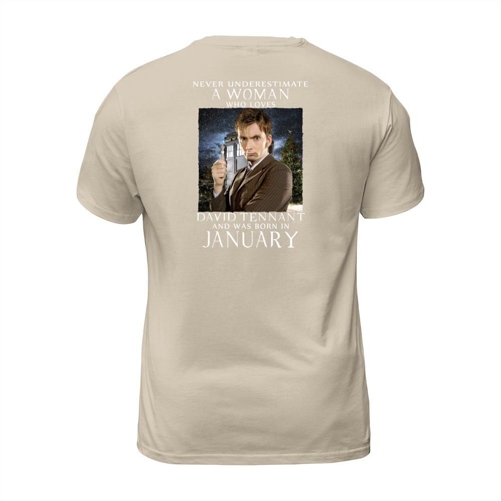 Shop NEVER UNDERESTIMATE A WOMAN who loves david tennant and was born in january T-Shirt Unisex custom made just for you. Available on many styles, sizes, and colors.