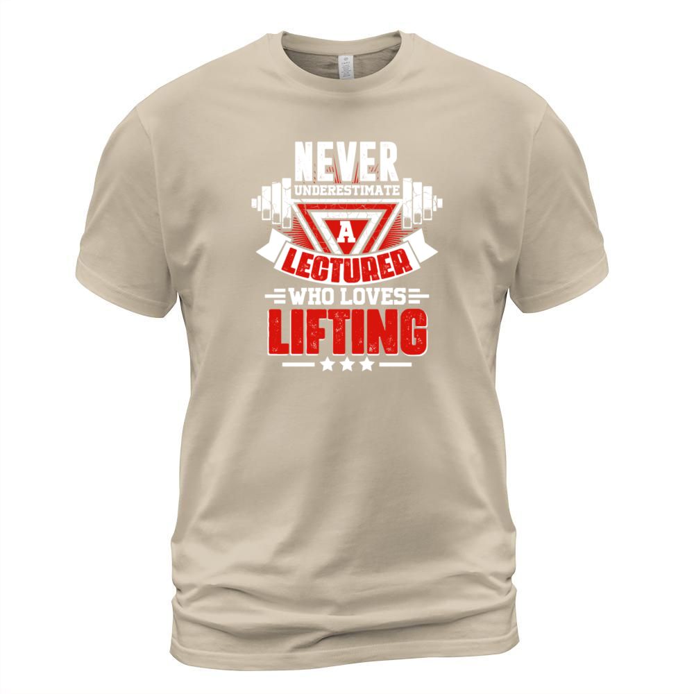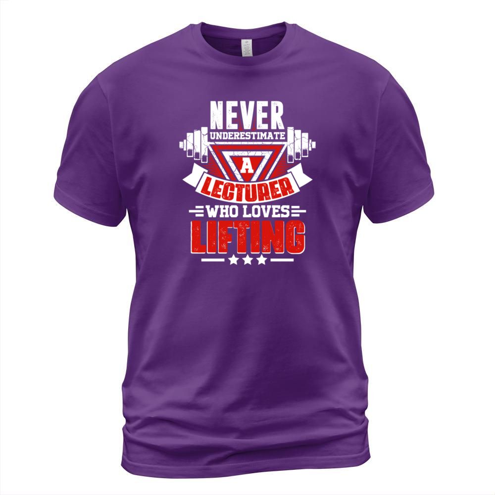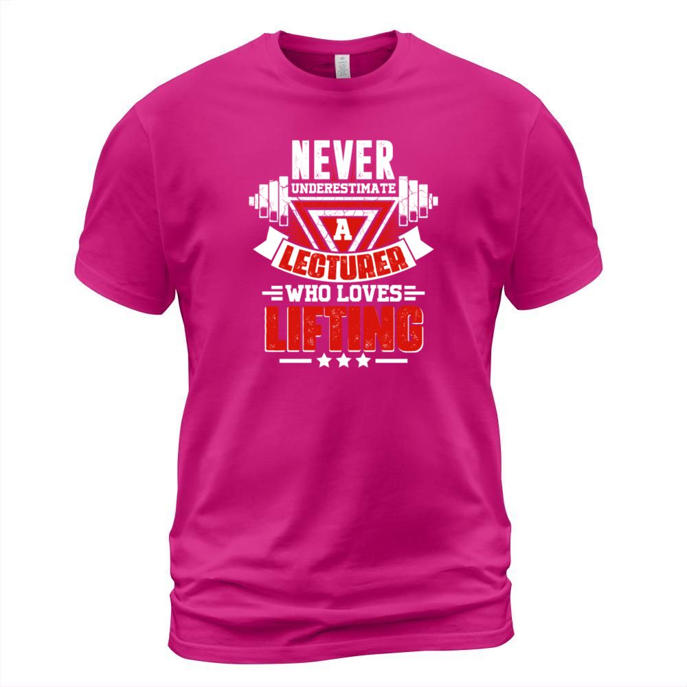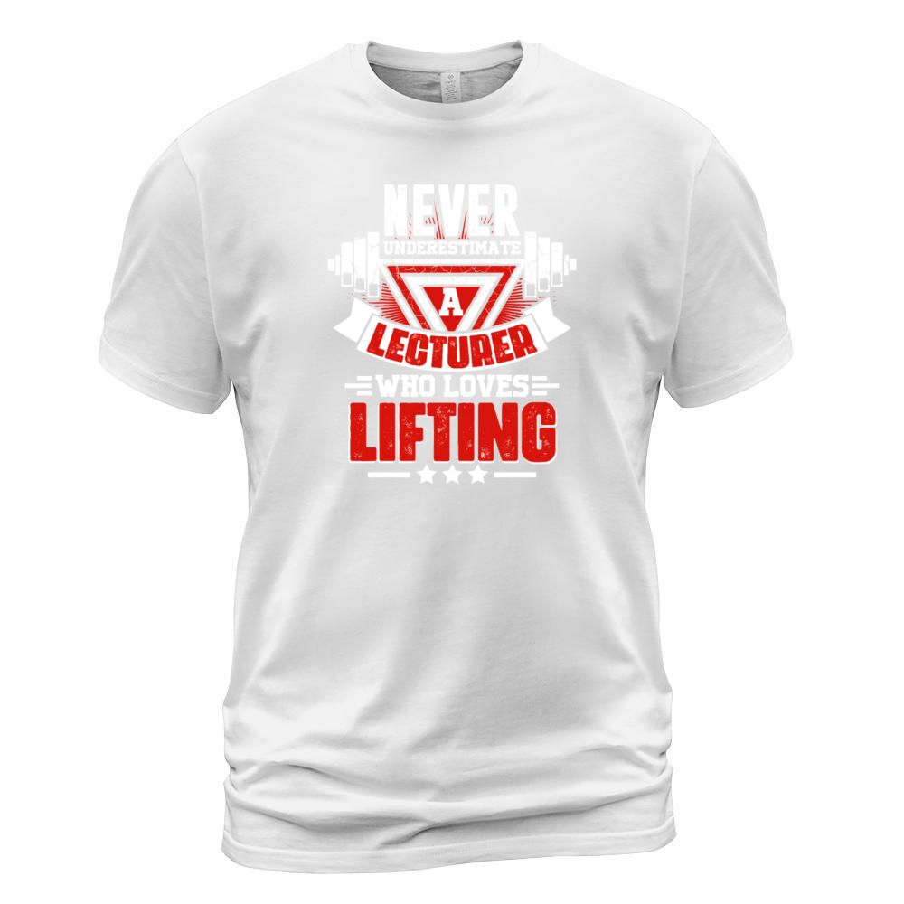 Shop Never Underestimate Lecturer Gym Workout Fitness W T-Shirt Unisex custom made just for you. Available on many styles, sizes, and colors.