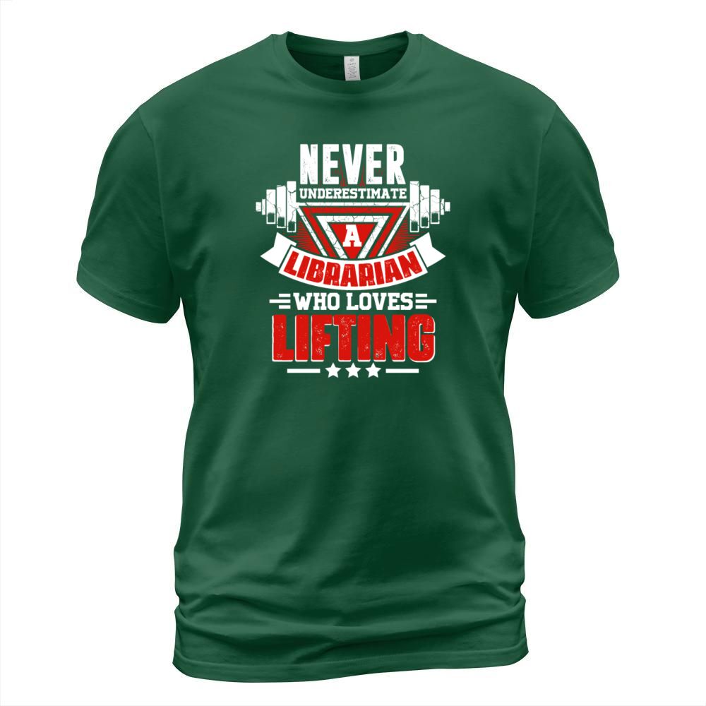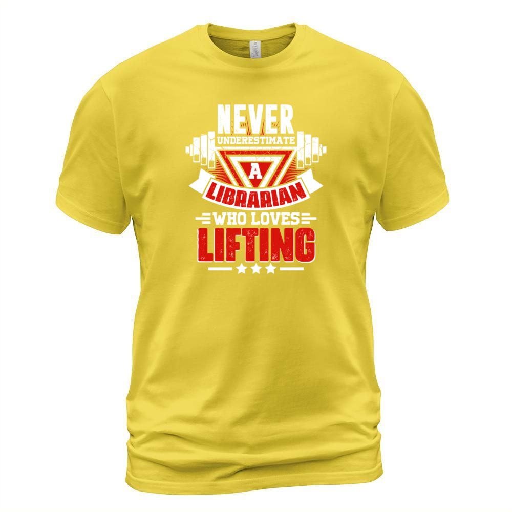 Shop Never Underestimate Librarian Gym Workout Fitness T-Shirt Unisex custom made just for you. Available on many styles, sizes, and colors.