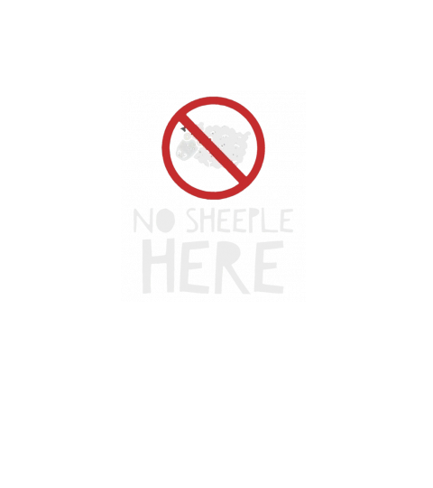 Shop No Sheeple Here T-shirt with funny cartoon sheep. Hoodie Unisex custom made just for you. Available on many styles, sizes, and colors.