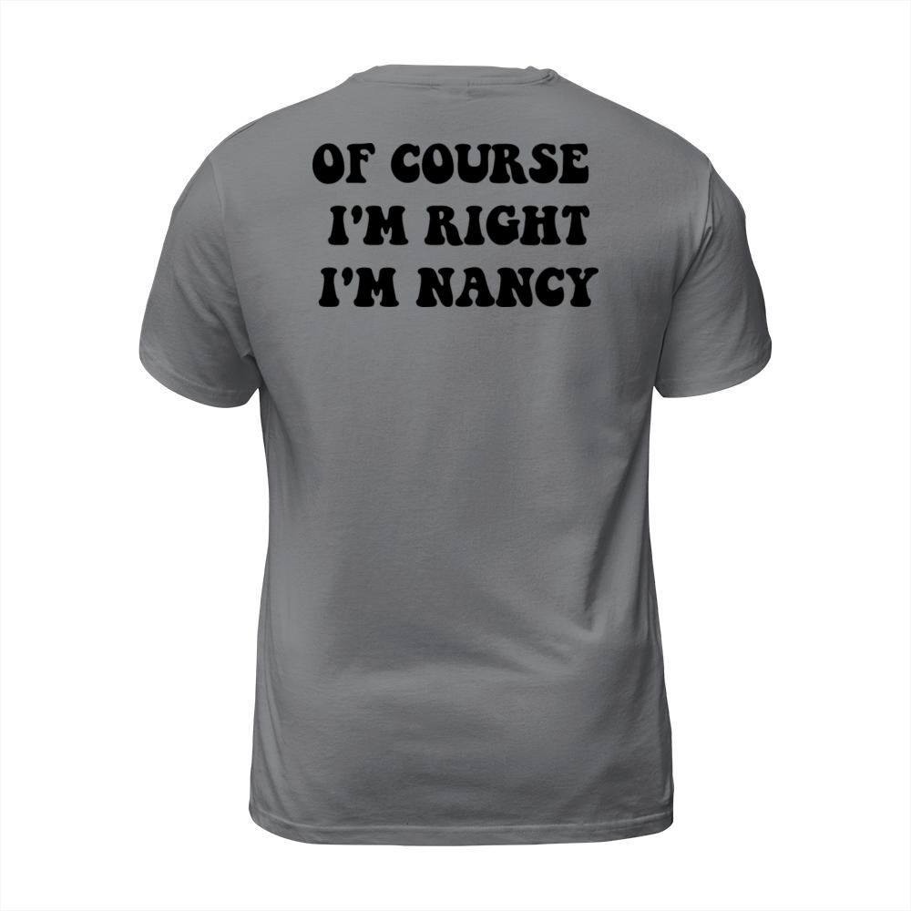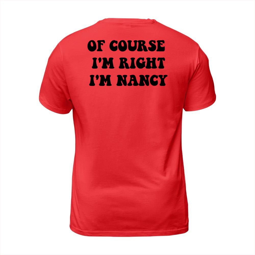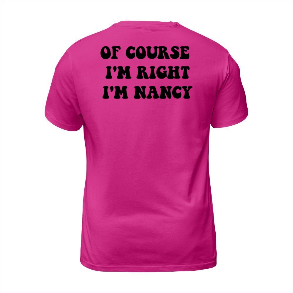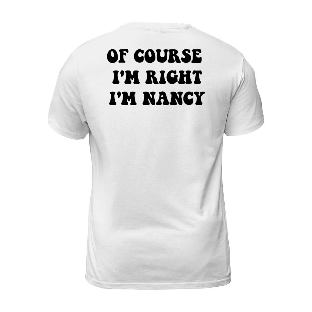 Shop OF course m right i m Nancy for cute Nancy T-Shirt Unisex custom made just for you. Available on many styles, sizes, and colors.