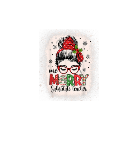 One Merry Substitute Teacher Messy Bun Christmas