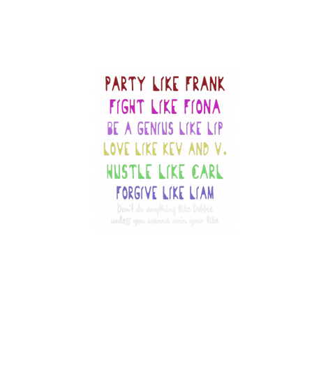 Party like frank fight like Fiona be a Genius like lip love like Kev and V Hustle like carl shirt
