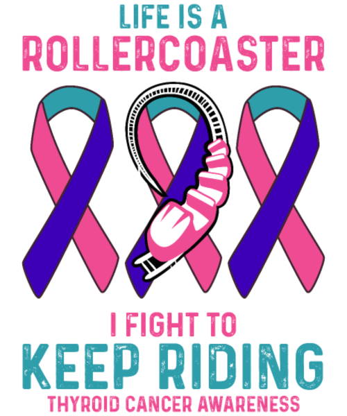 Pink Teal Purple Ribbon Thyroid Cancer