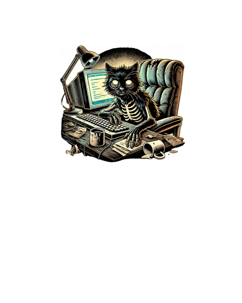Post-Apocalyptic Cat Hacker with Skeleton Vibes