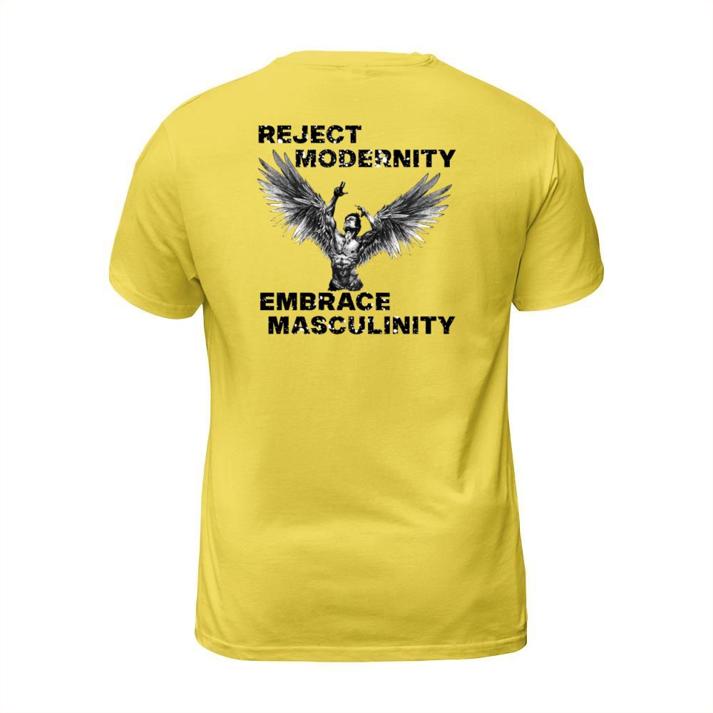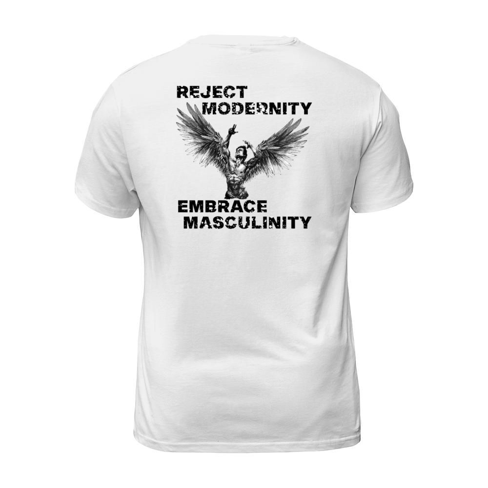 Shop Reject Modernity Embrace Masculinity T-Shirt Unisex custom made just for you. Available on many styles, sizes, and colors.
