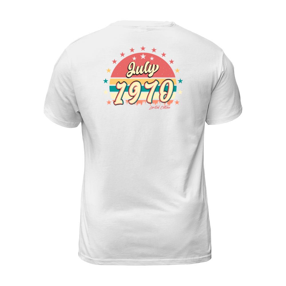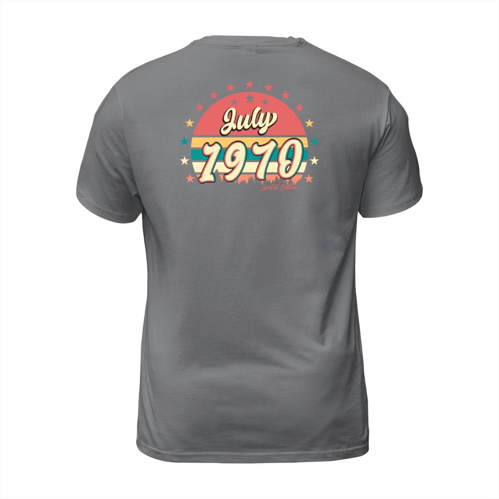 Shop Retro 1970 July T-Shirt Unisex custom made just for you. Available on many styles, sizes, and colors.