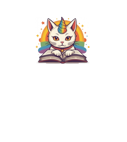 Retro Doodle Cat with Rainbow Horns - Reading Time
