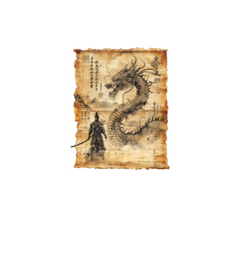 Retro Dragon Papyrus Scroll Japanese Art