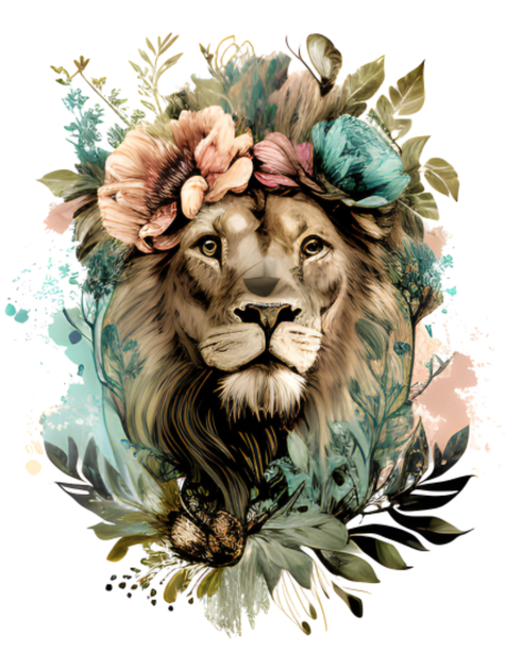Retro floral lioness head