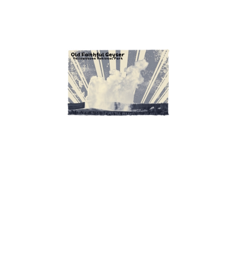 Retro Old Faithful eruption in Yellowstone in blue