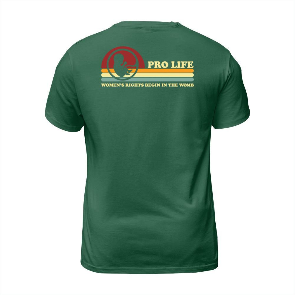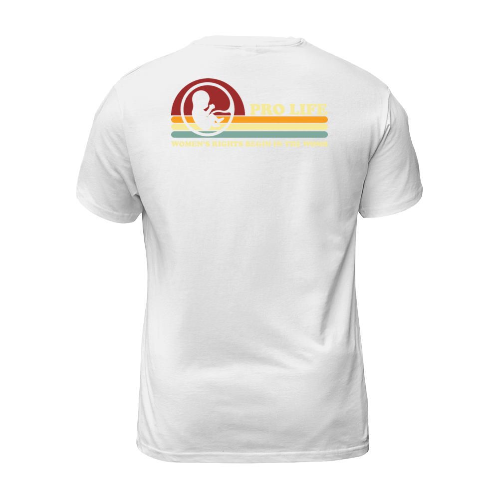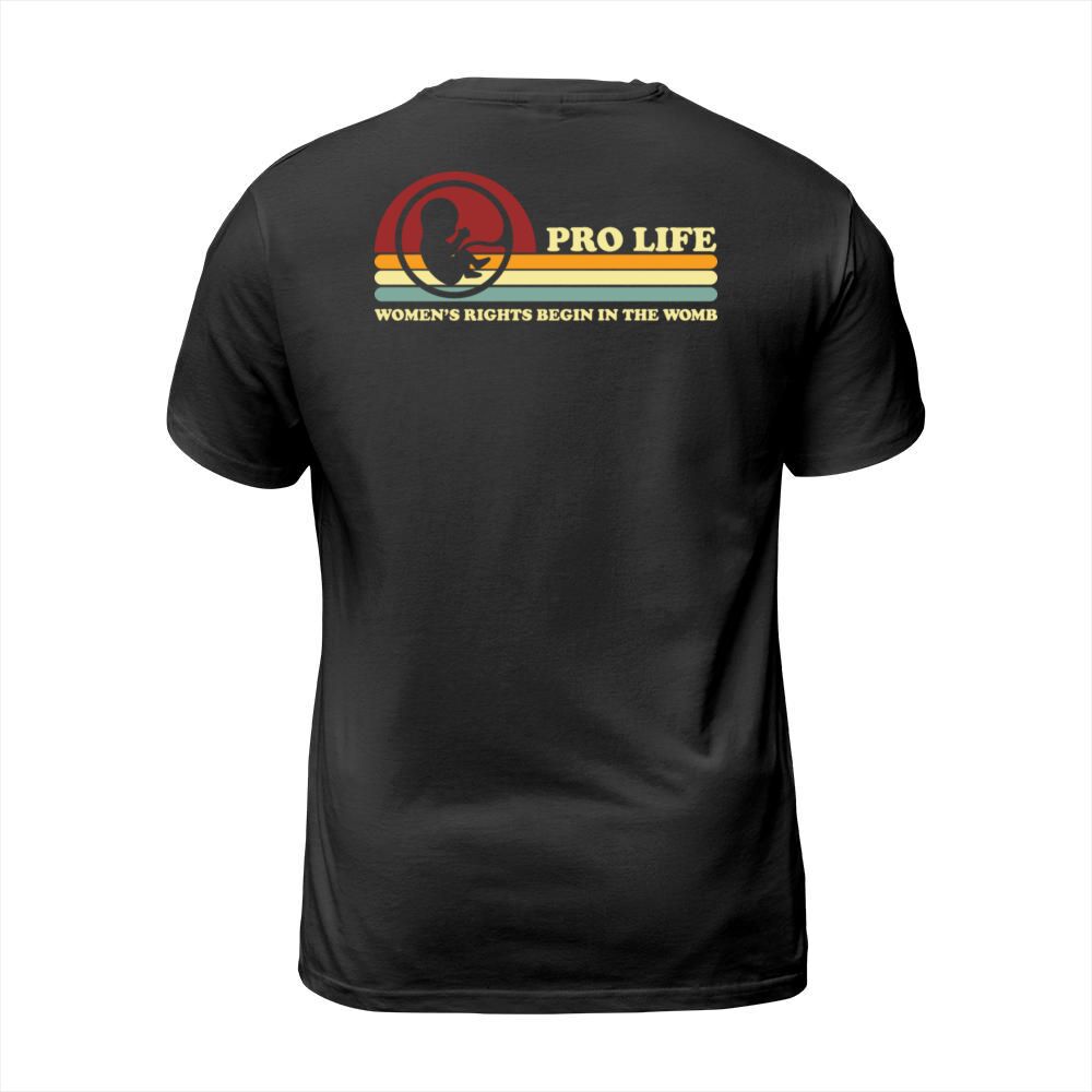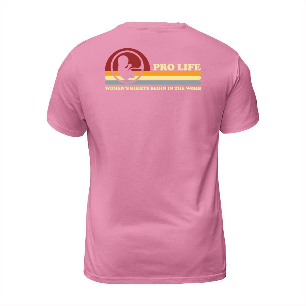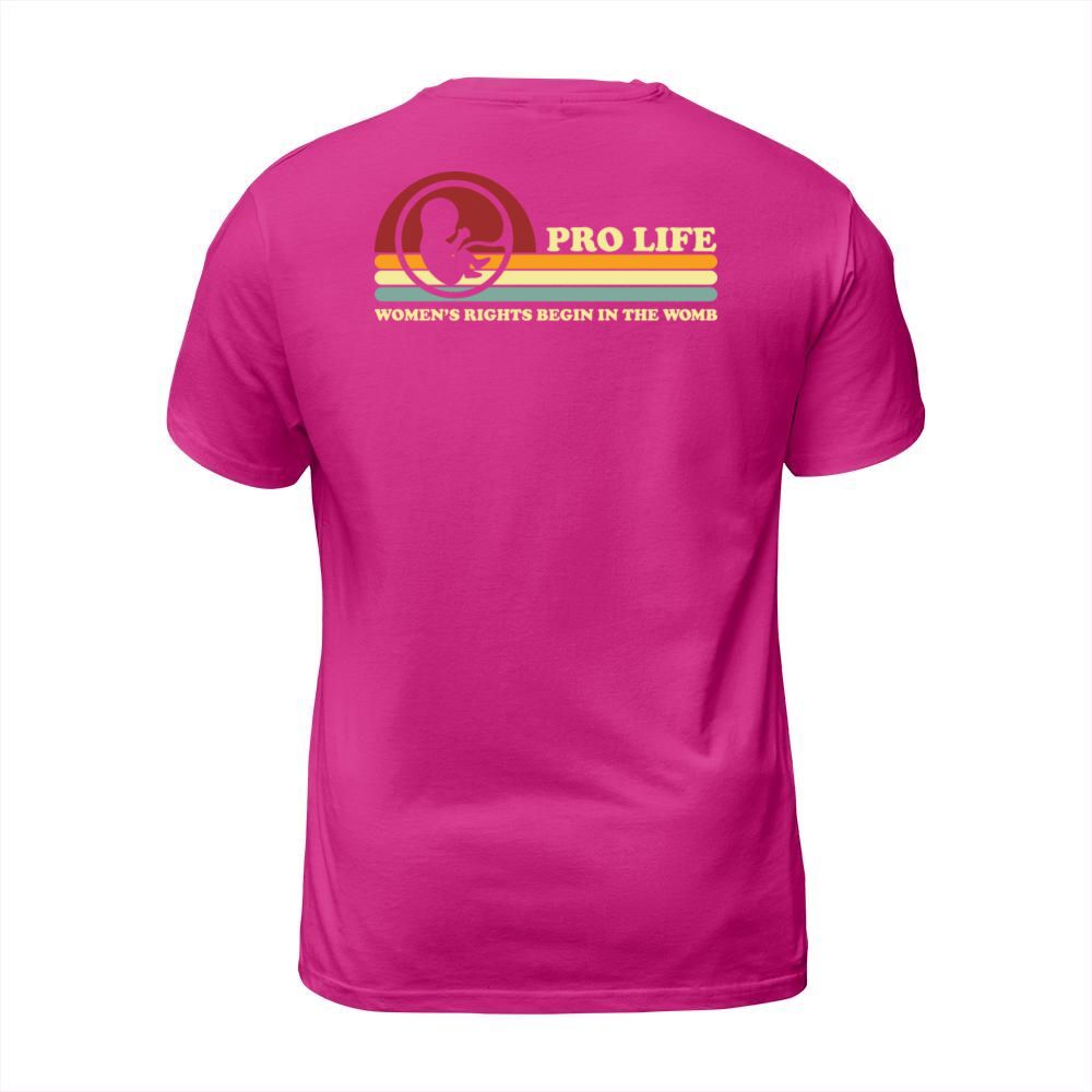 Shop Retro Pro Life Women s Rights Begin In The Womb T-Shirt Unisex custom made just for you. Available on many styles, sizes, and colors.