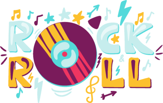 Rock and Roll Label with Vinyl Retro Music Symbol