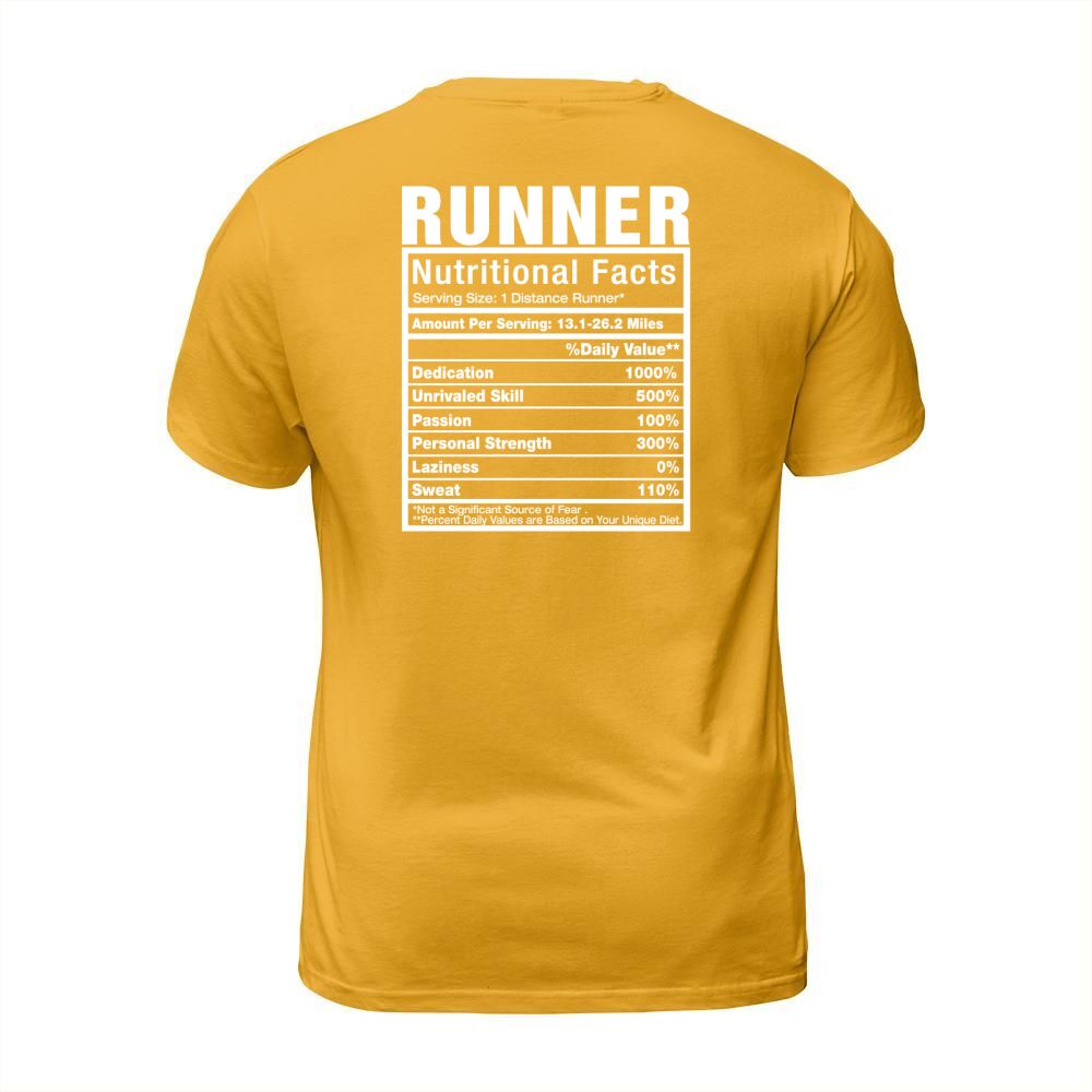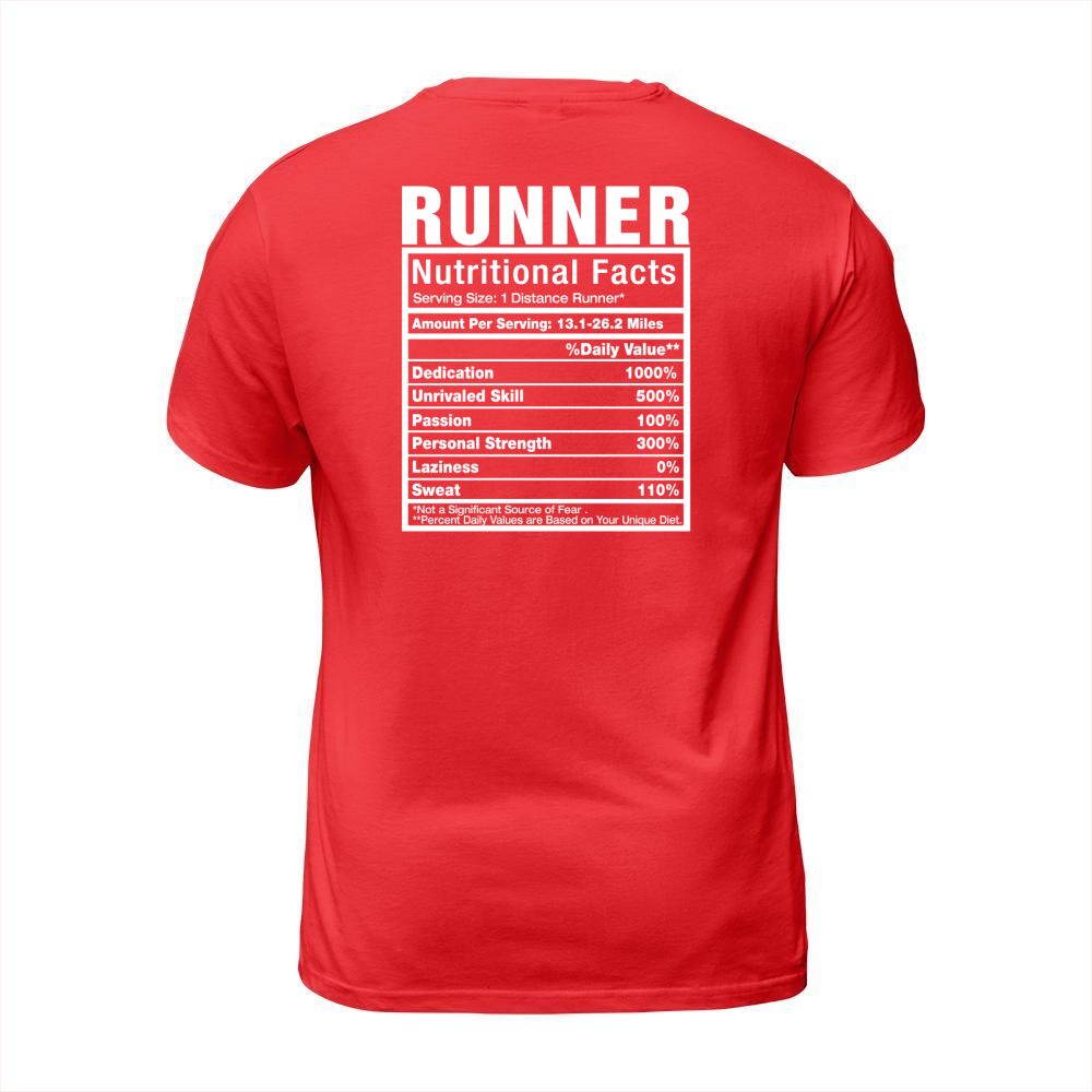 Shop Runner Nutritional Facts T shirt T-Shirt Unisex custom made just for you. Available on many styles, sizes, and colors.
