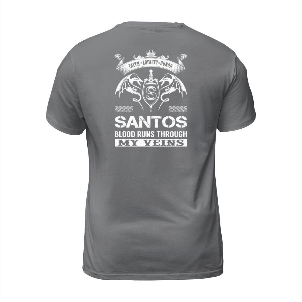 Shop SANTOS Blood Runs Through My Veins Name Shirts T-Shirt Unisex custom made just for you. Available on many styles, sizes, and colors.