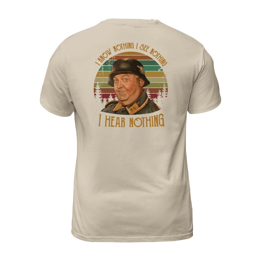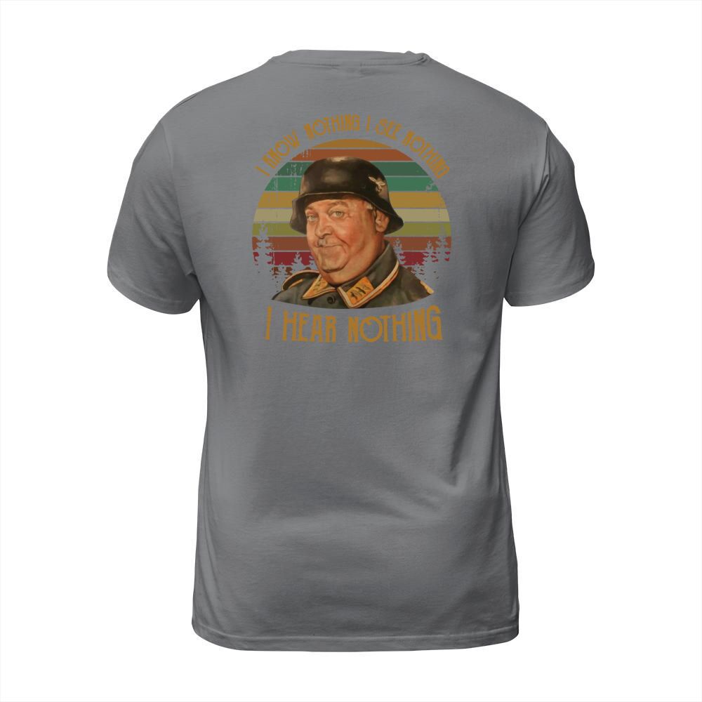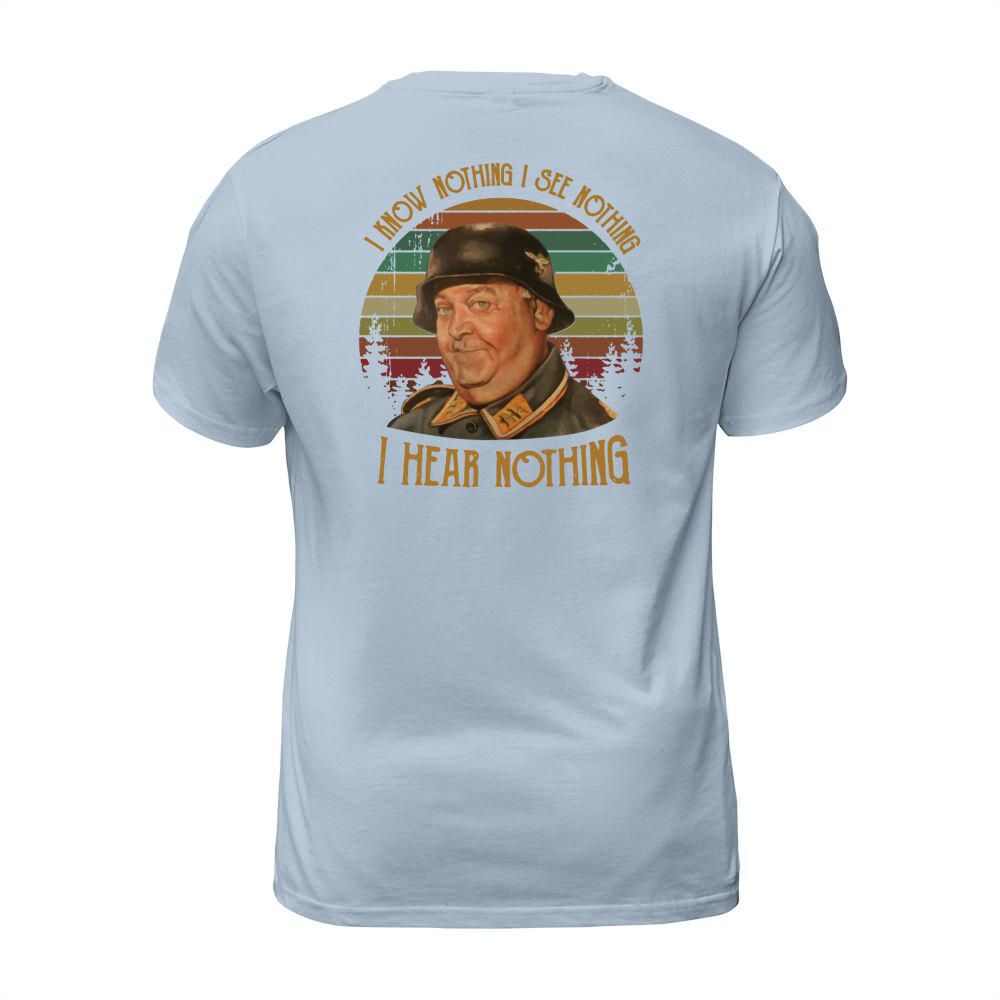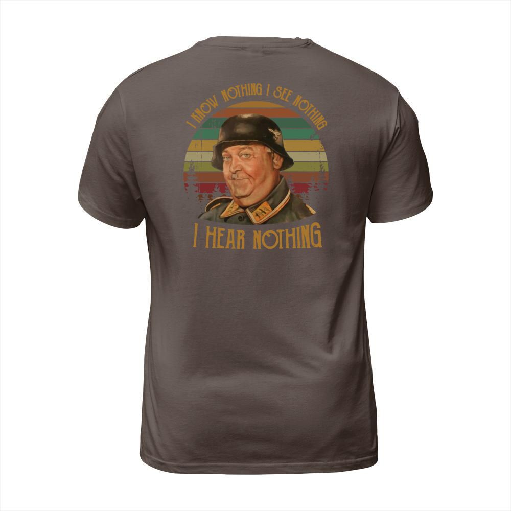 Shop Sergeant Schultz I know nothing I see nothing I hear nothing T-Shirt Unisex custom made just for you. Available on many styles, sizes, and colors.