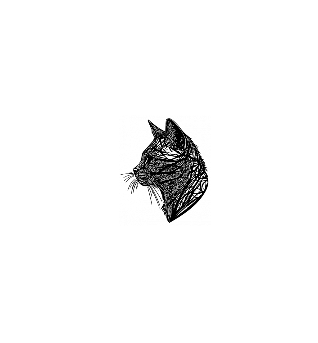 Small Cat In Nature Net Lines Tattoo Style