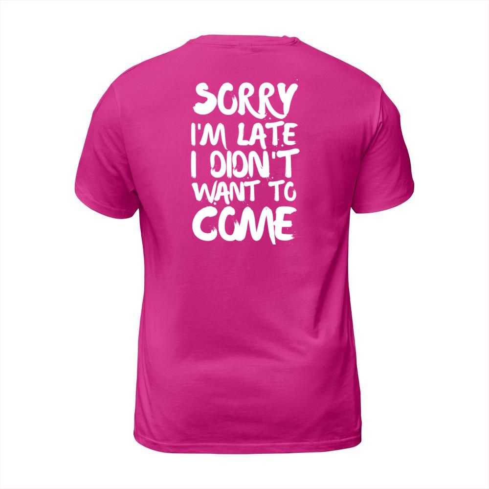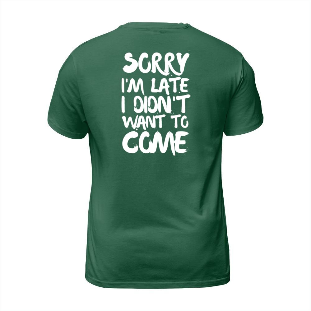 Shop Sorry Im Late I Didnt Want to Come T-Shirt Unisex custom made just for you. Available on many styles, sizes, and colors.