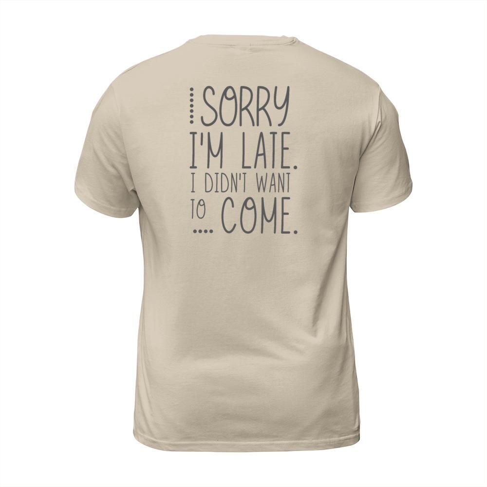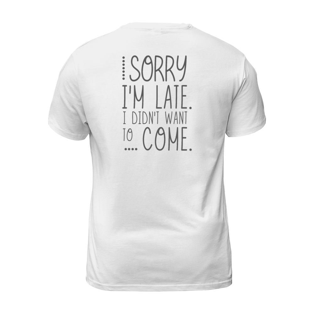 Shop Sorry Im Late I Didnt Want to Come T-Shirt Unisex custom made just for you. Available on many styles, sizes, and colors.
