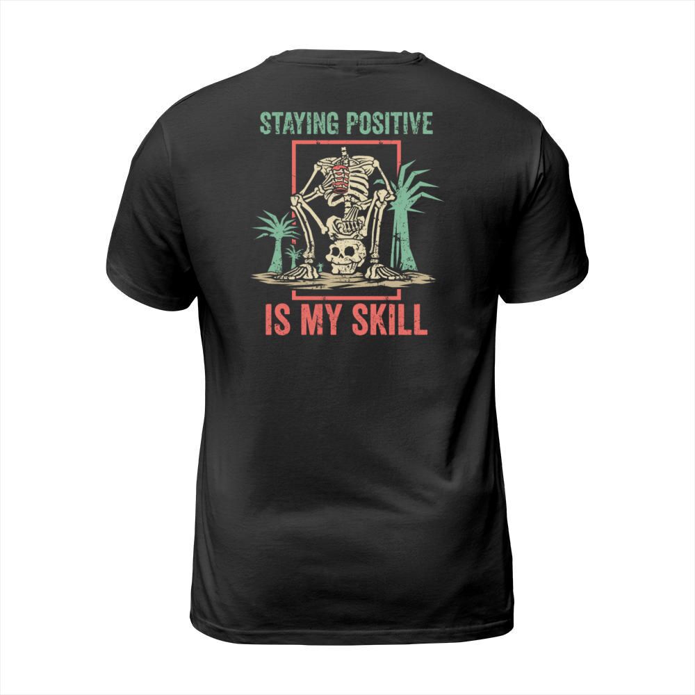Shop Staying Positive Is My Skill T-Shirt Unisex custom made just for you. Available on many styles, sizes, and colors.