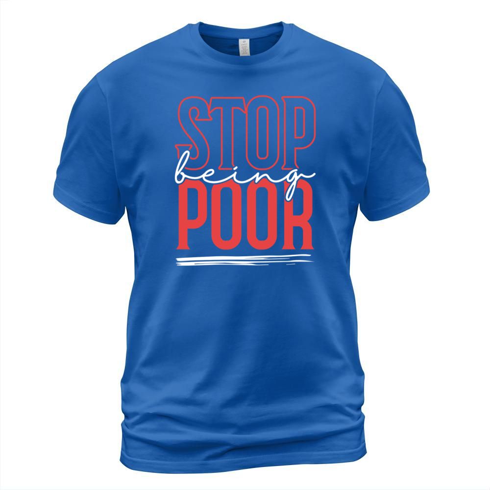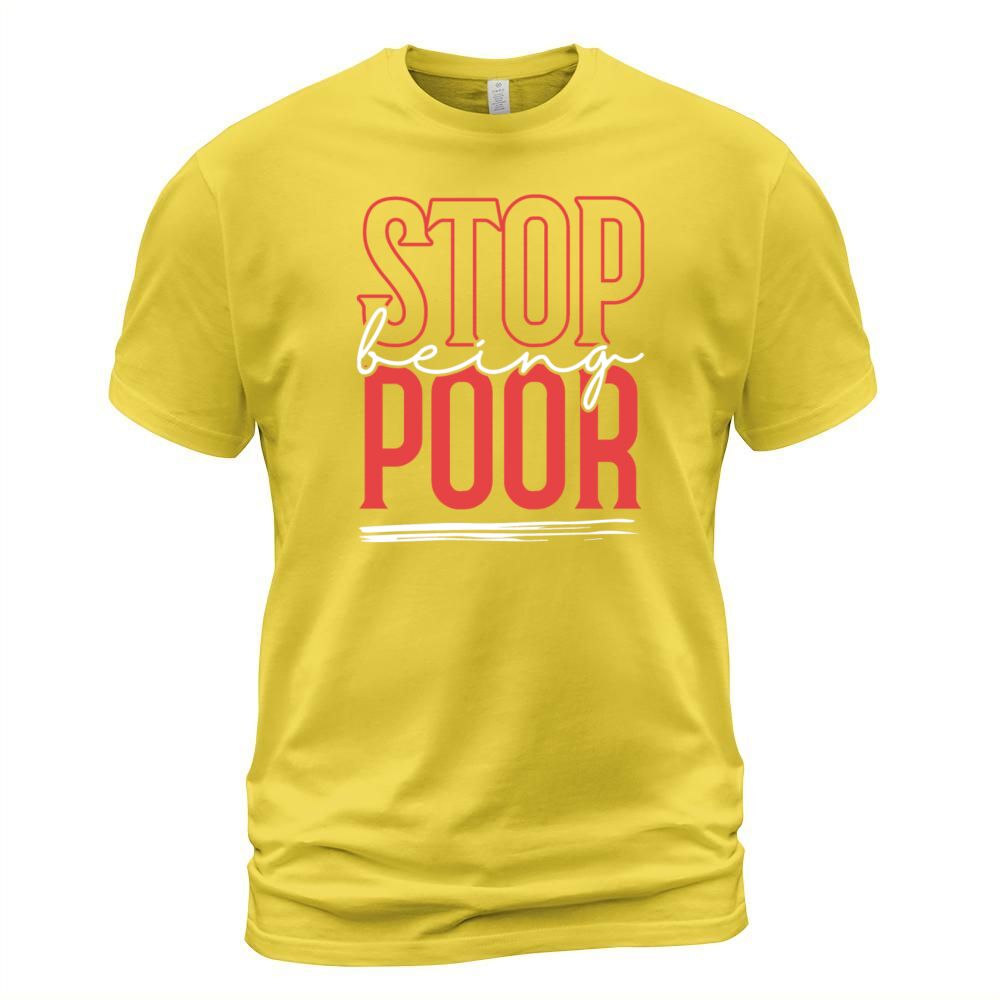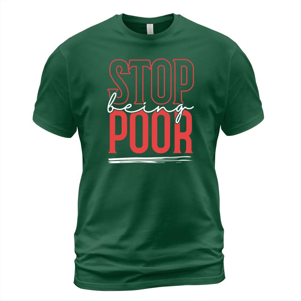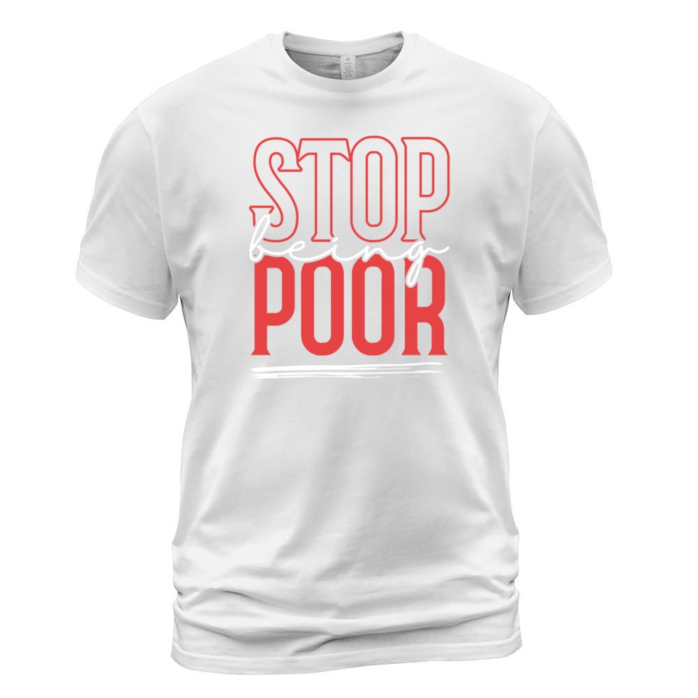 Shop STOP BEING POOR T-Shirt Unisex custom made just for you. Available on many styles, sizes, and colors.