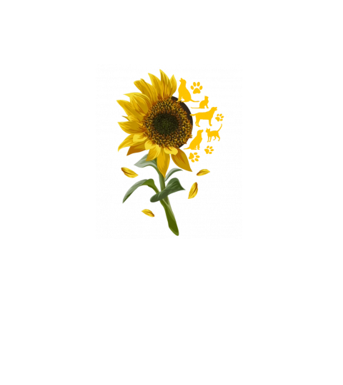 Sunflower with Dog and Cat Paw Feline Puppy Art