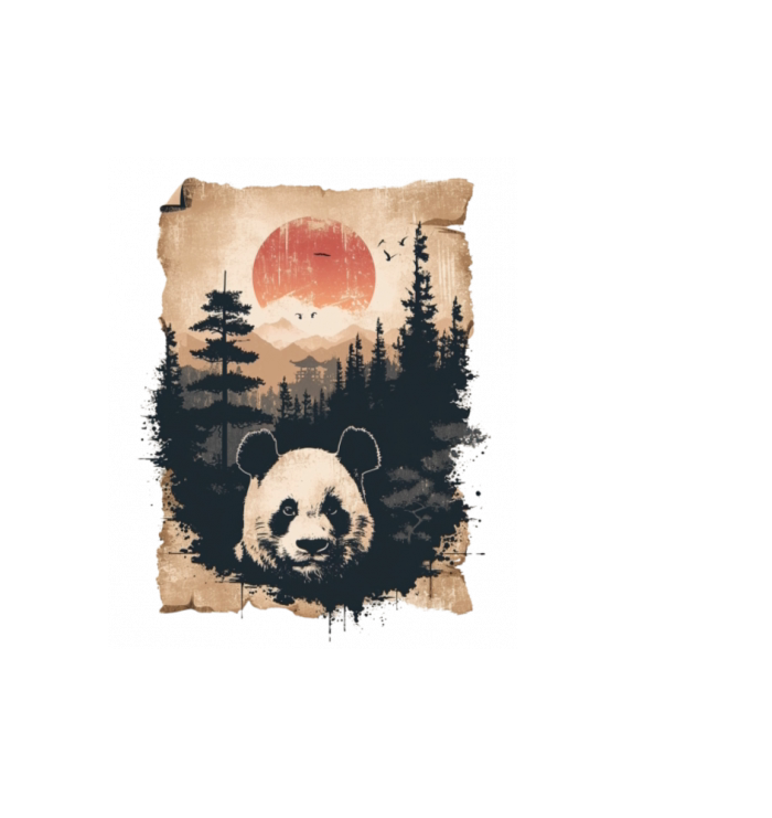 Sunset Scenery Papyrus Scroll Japanese Art Panda