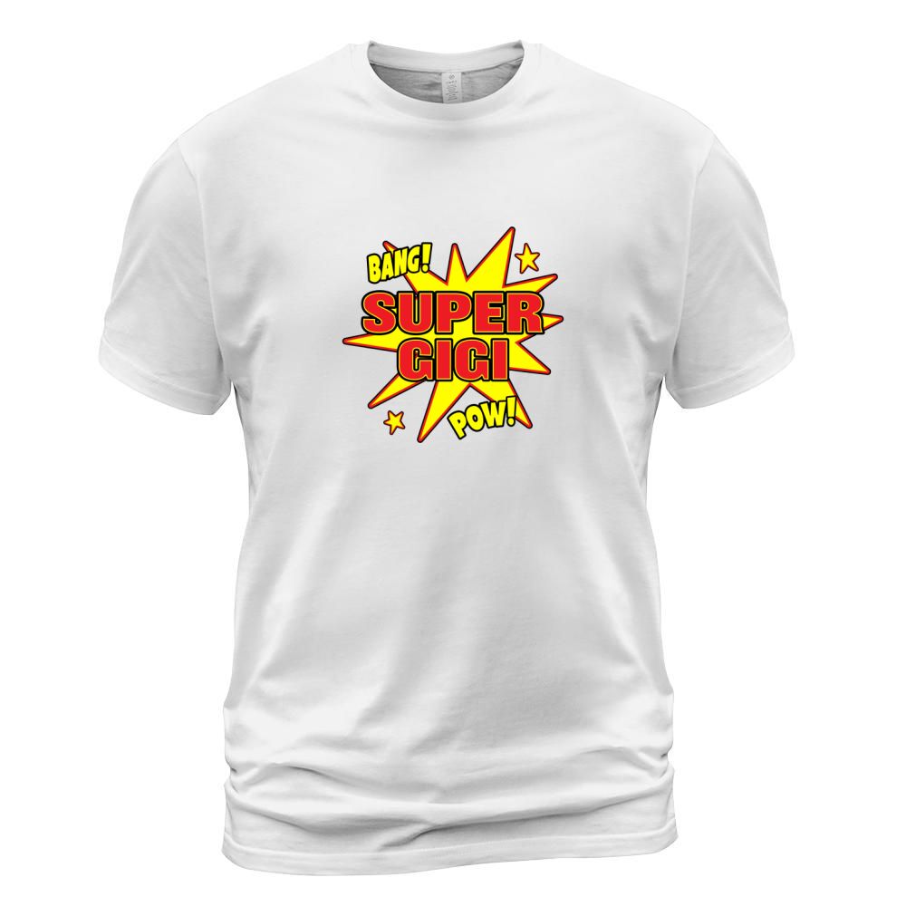 Shop Super Gigi Super Hero Power Grandma Grandmother Gift T-Shirt Unisex custom made just for you. Available on many styles, sizes, and colors.