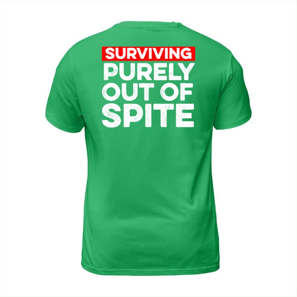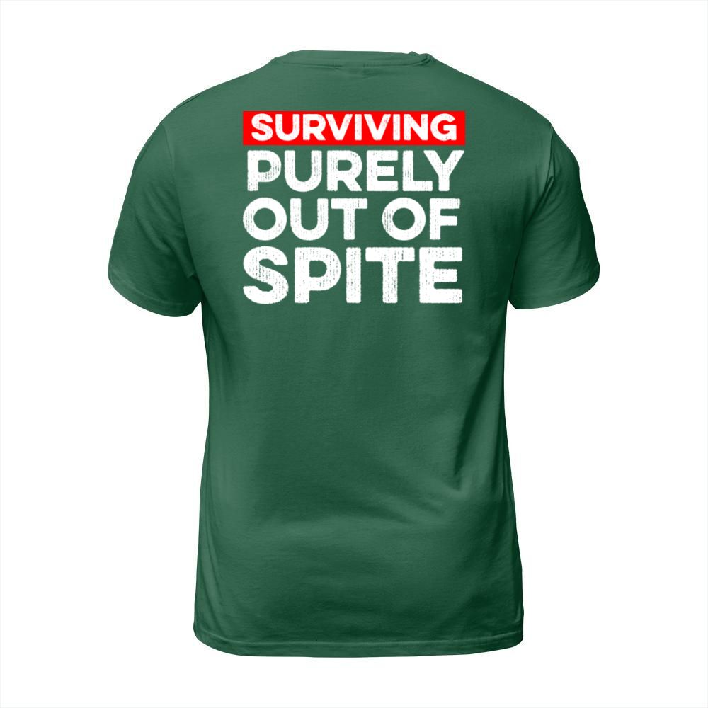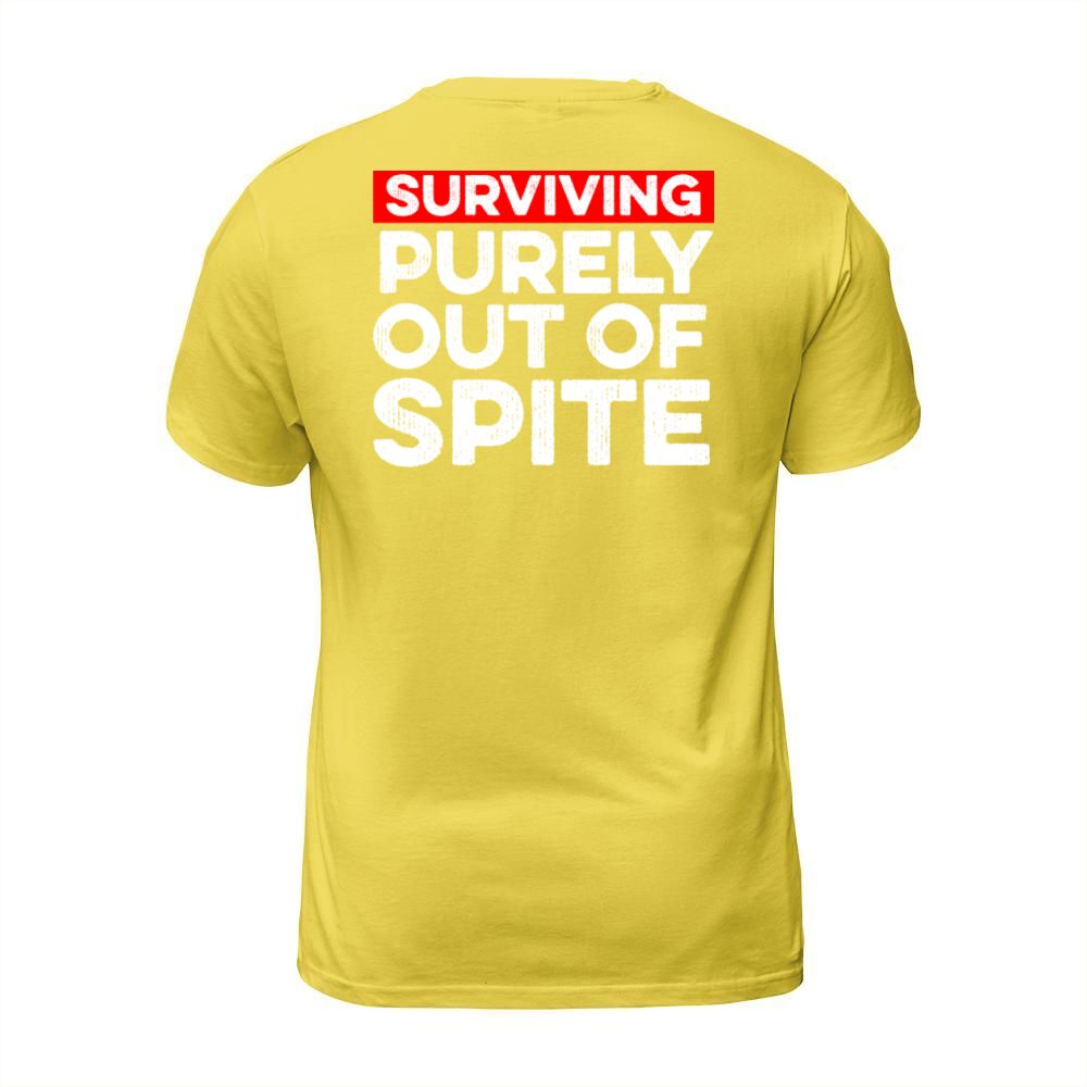 Shop Surviving Purely Out Of Spite Funny T-Shirt Unisex custom made just for you. Available on many styles, sizes, and colors.