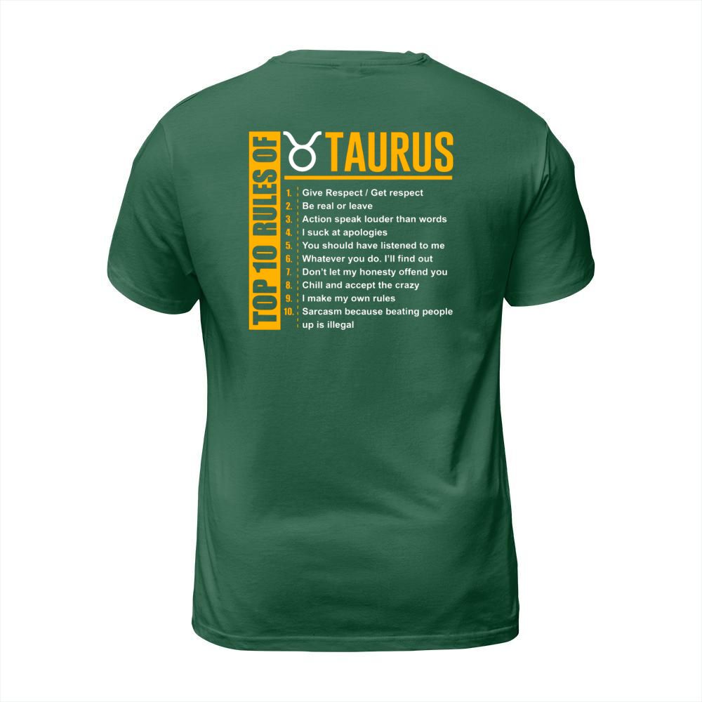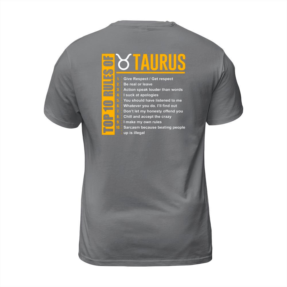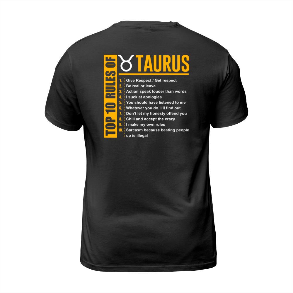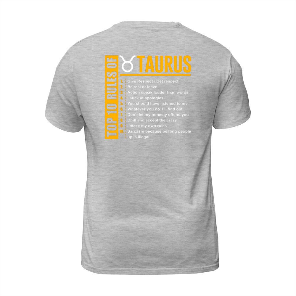 Shop Top 10 Rules Of Taurus Zodiac T-Shirt Unisex custom made just for you. Available on many styles, sizes, and colors.