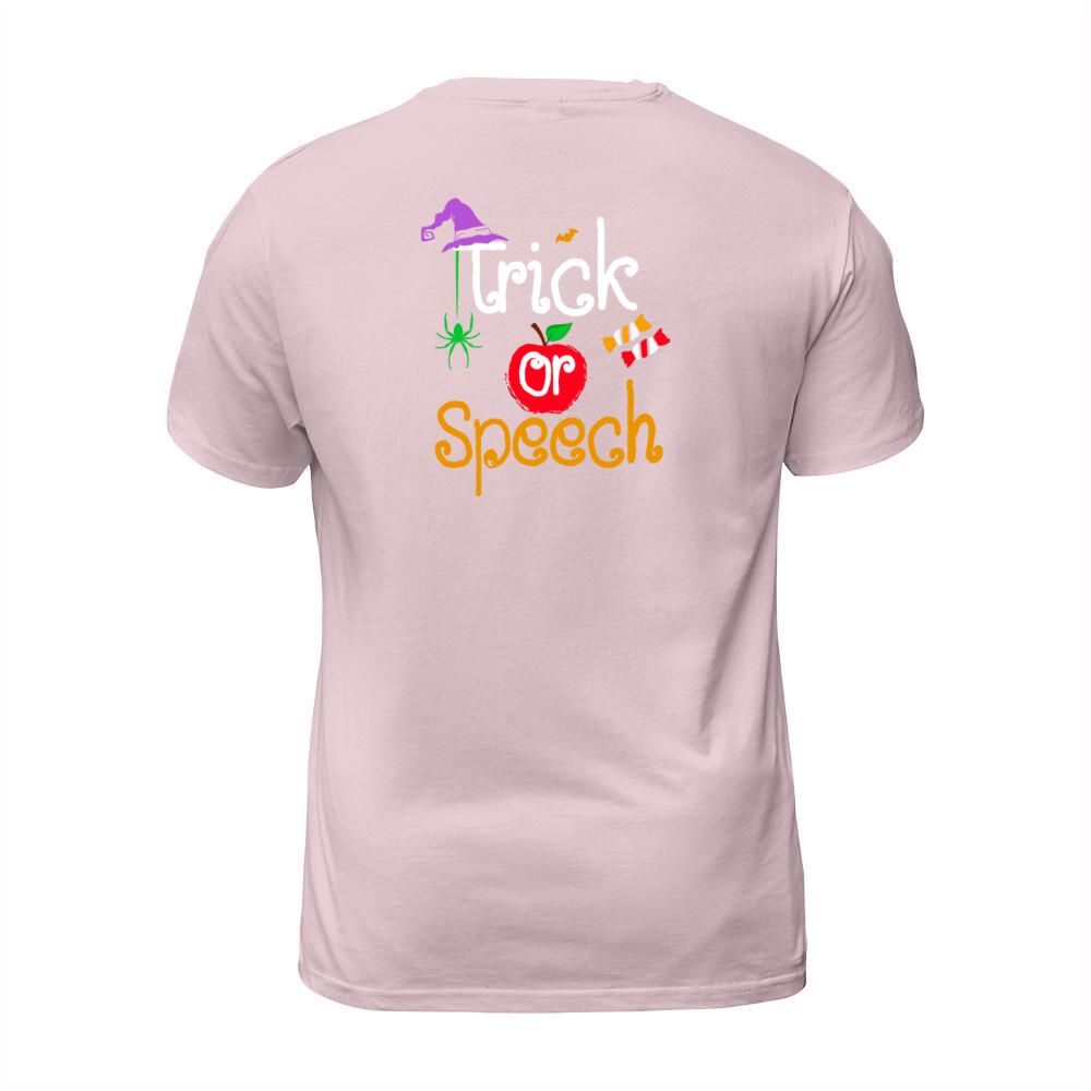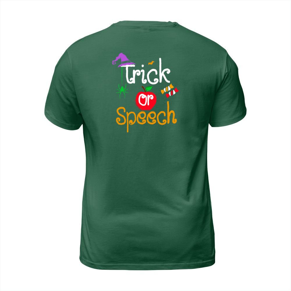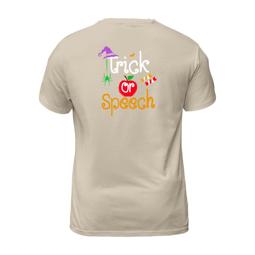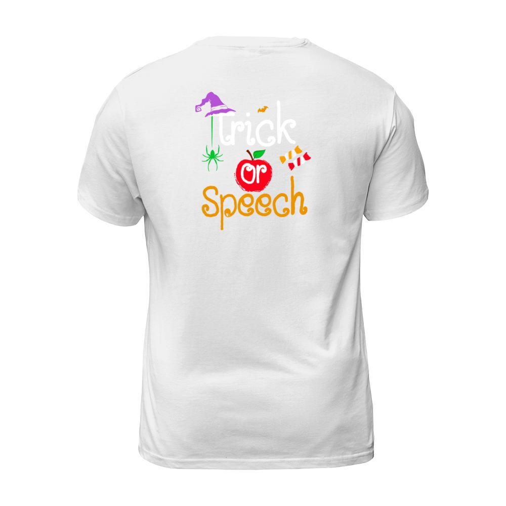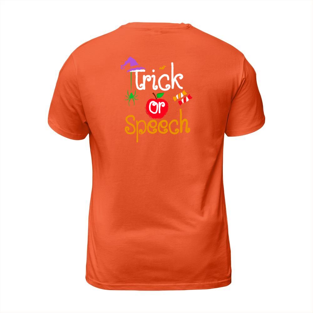 Shop Tricks Or Speech Languages Teacher Halloween T-Shirt Unisex custom made just for you. Available on many styles, sizes, and colors.