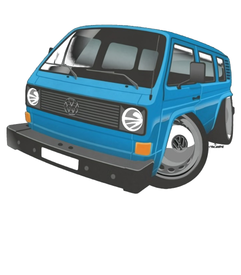 VW T3 bus caricature blue shirt