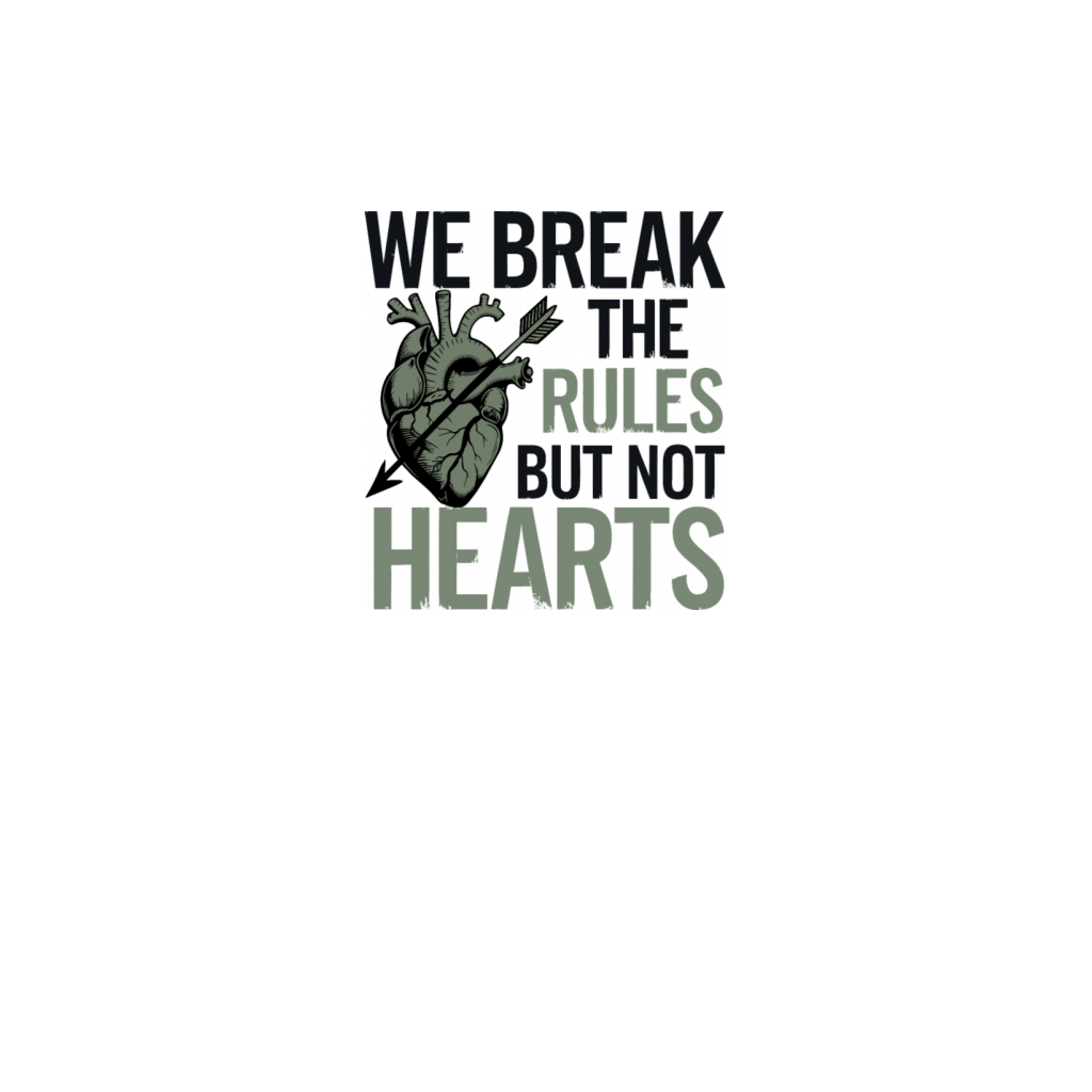 "We Break the Rules But Not Hearts" Bold Design