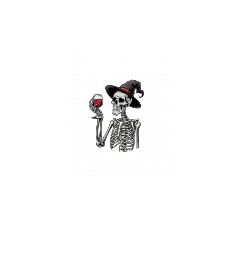 Witch Way to the Wine Halloween skeleton quote